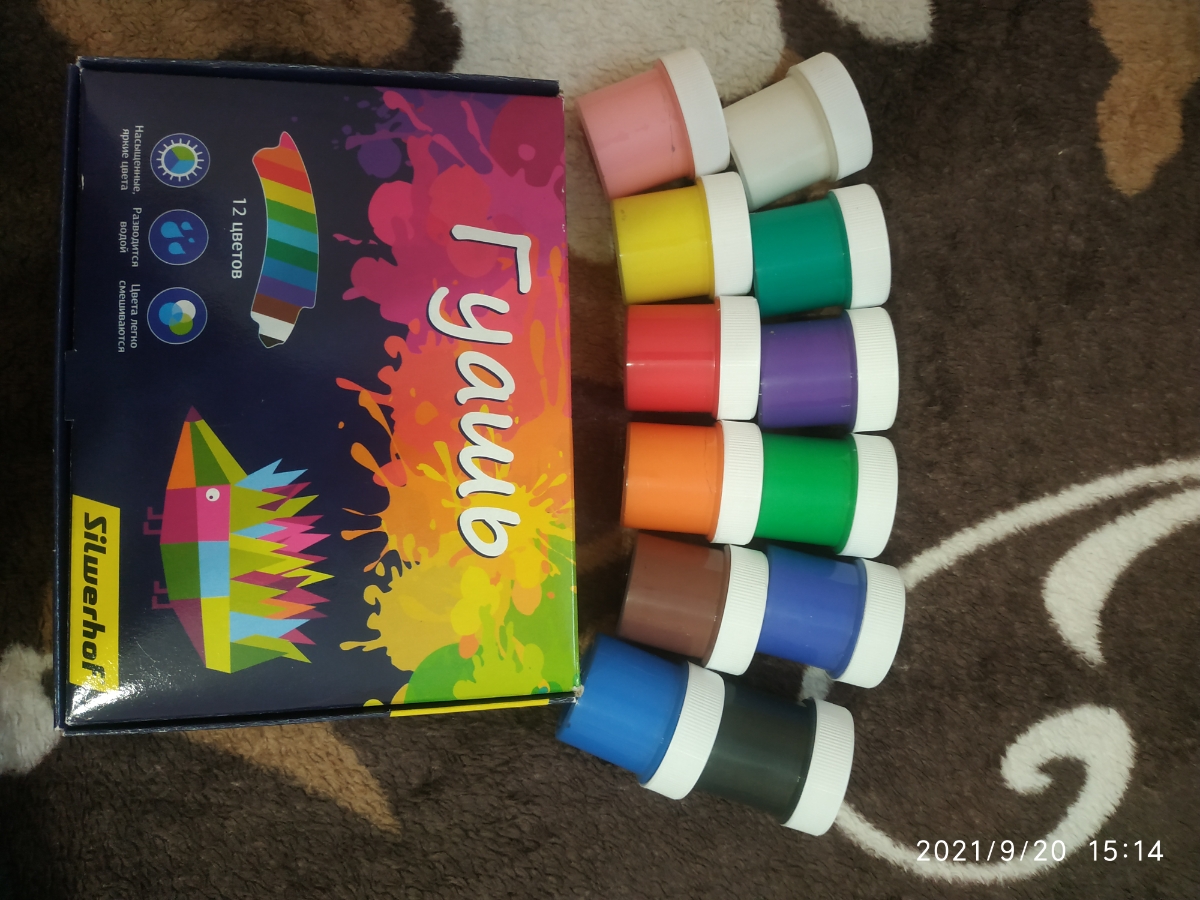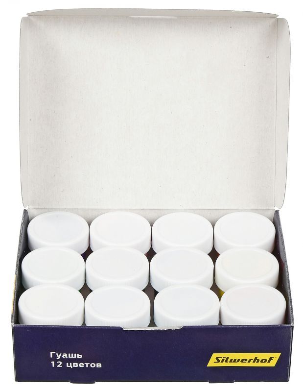 Гуашь 12 цветов, объем баночки 20 мл., Silwerhof Цветландия, картонная коробка.