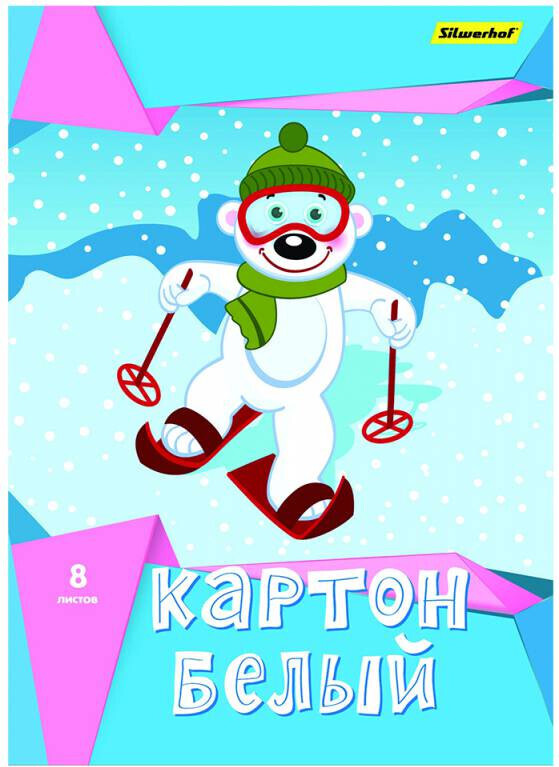 Картон белый Silwerhof 918099-14/1 мелов. 8л. A4 Белый мишка 230г/м2 1диз. обл.мел.картон, 24 папки