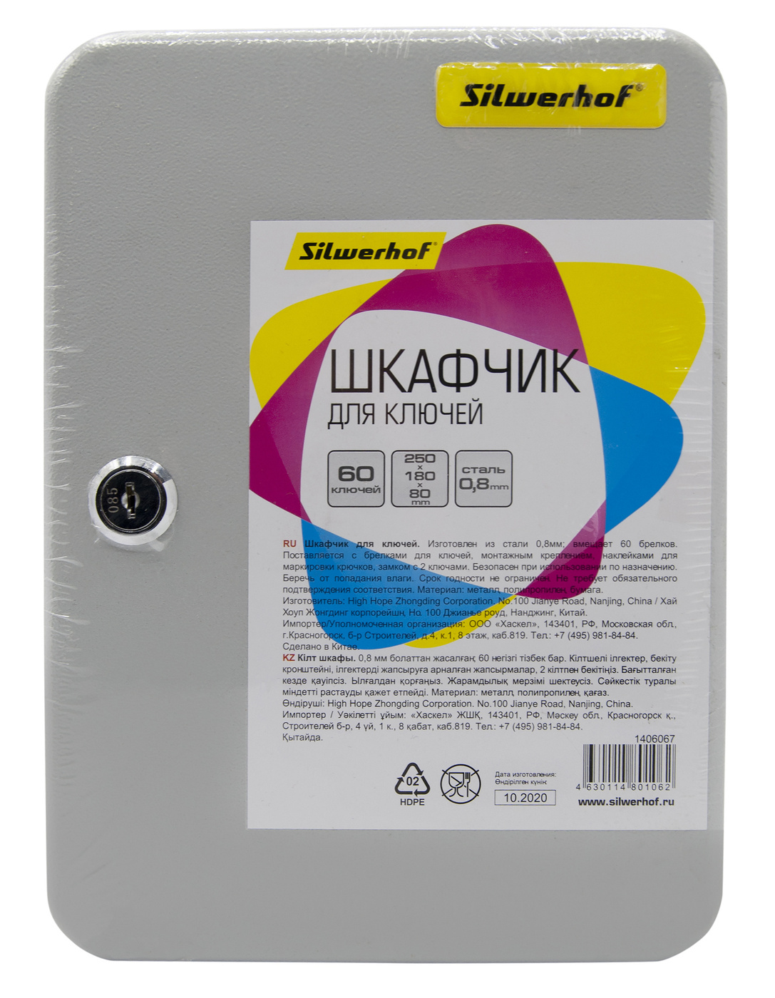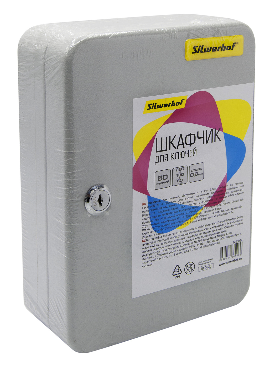 Ящик для ключей Silwerhof, на 60 ключей, 60 брелков, серый металл, 250 х 180 х 80 мм