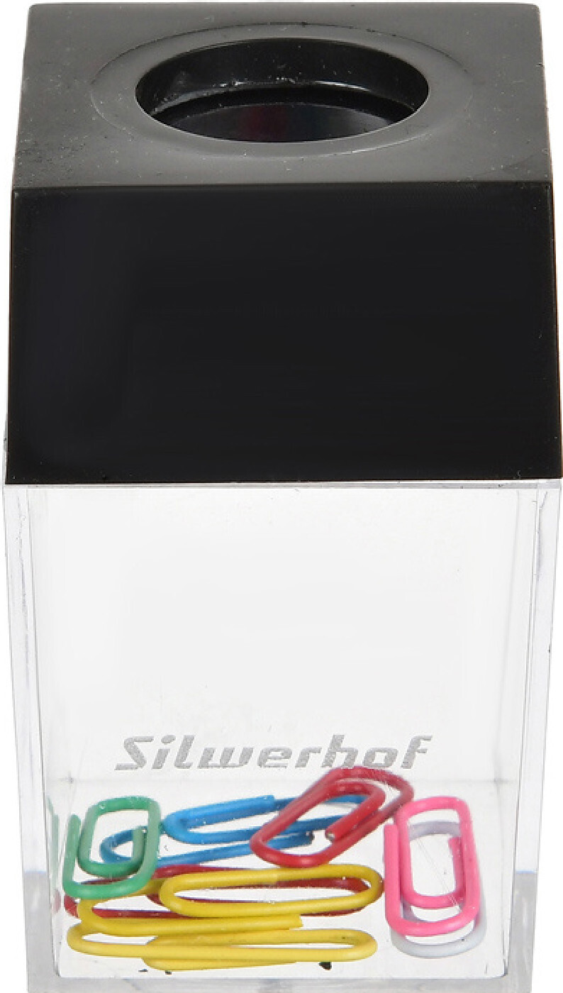 Скрепочница Silwerhof 503001 магнитная с наполнением прозрачный картонная коробка