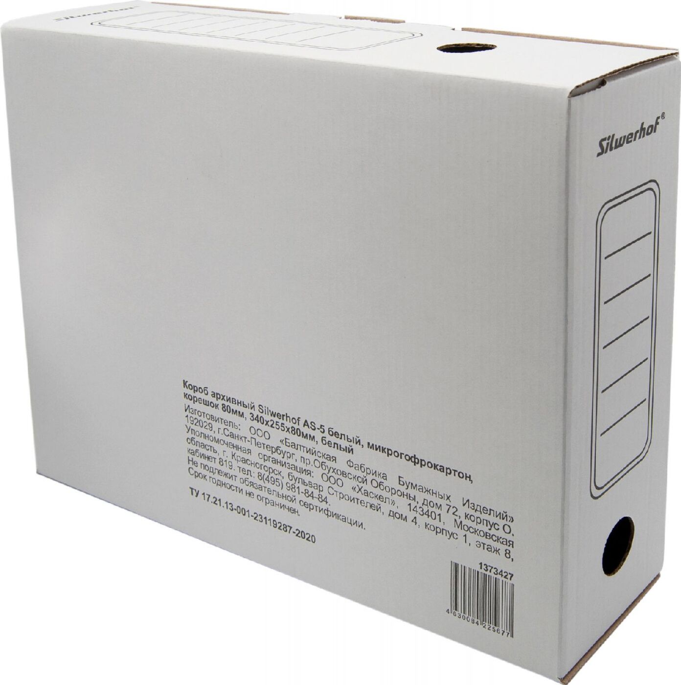 Короб архивный Silwerhof КА-80БЕЛЫЙ микрогофрокартон корешок 80мм 255x340x80мм белый - 40 шт