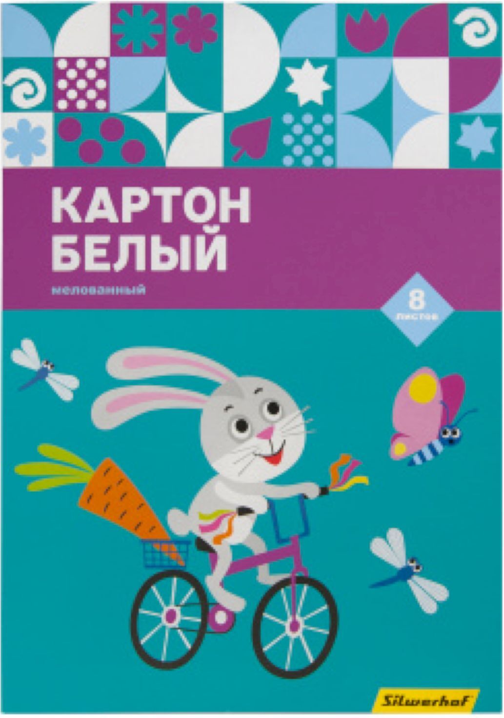 Картон белый Silwerhof Зайка, мелованный, 8 листов, A4, 230г/м2