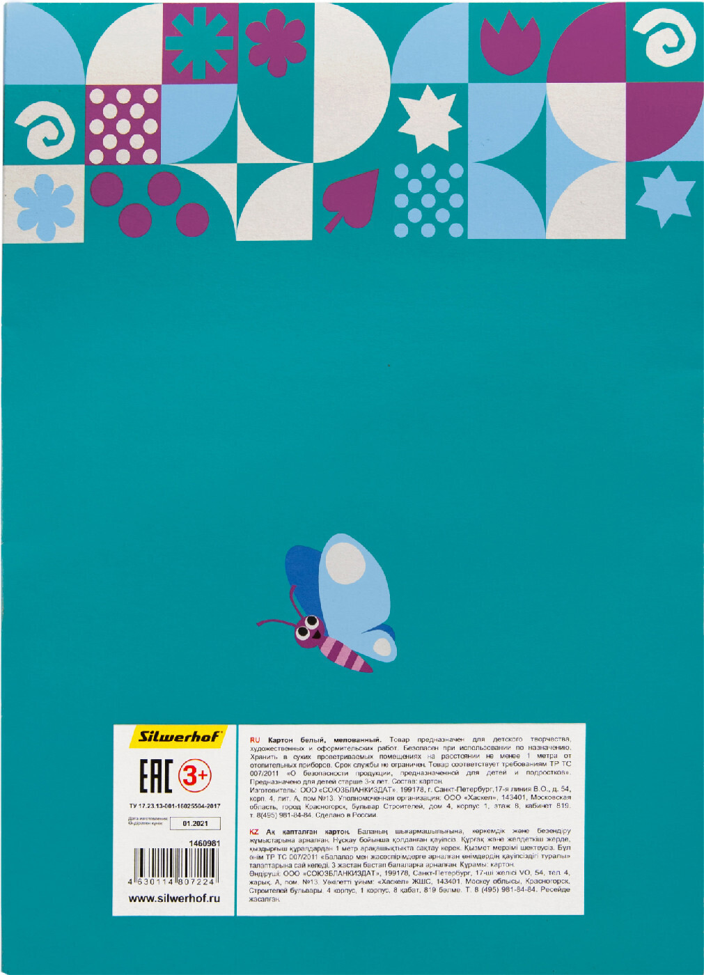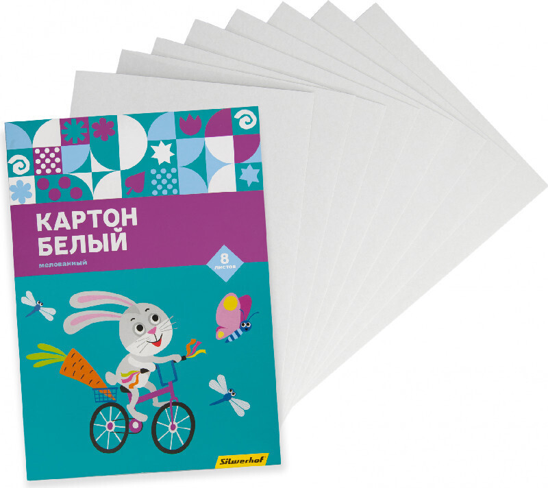 Картон белый Silwerhof мелов. 8л. A4 Зайка 230г/м2 1диз. обл.мел.картон