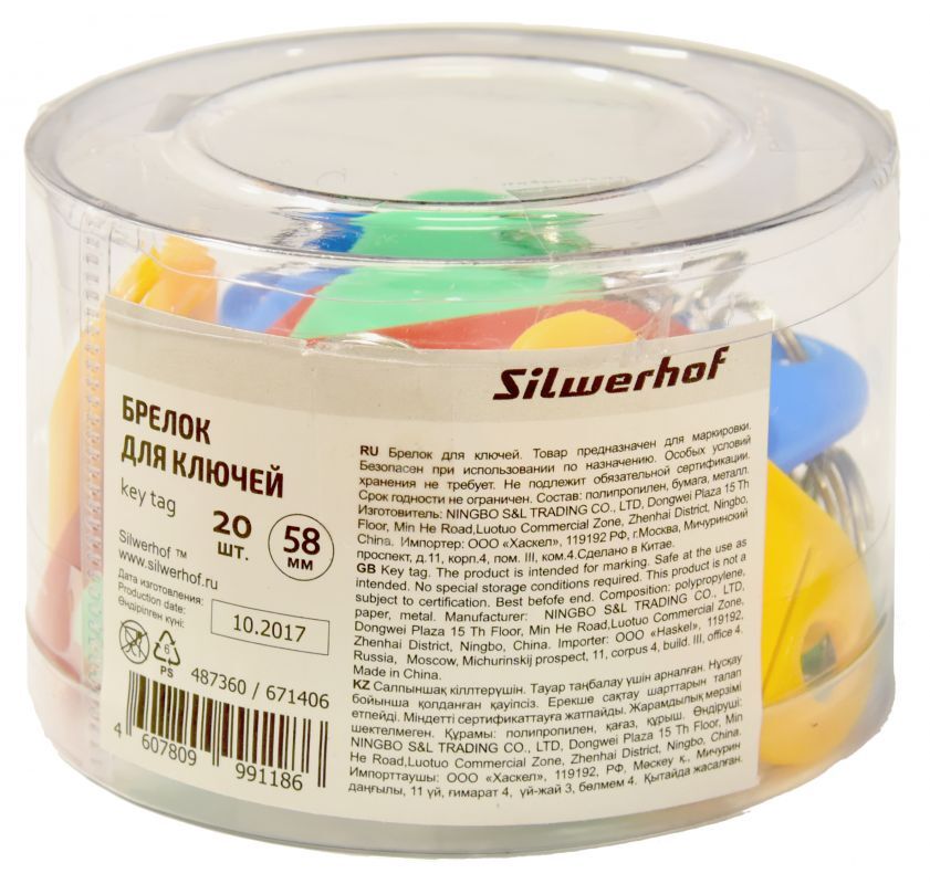 Бирка для ключей Silwerhof 671406 инфо-окно ассорти (упак.:20шт) пластиковая коробка