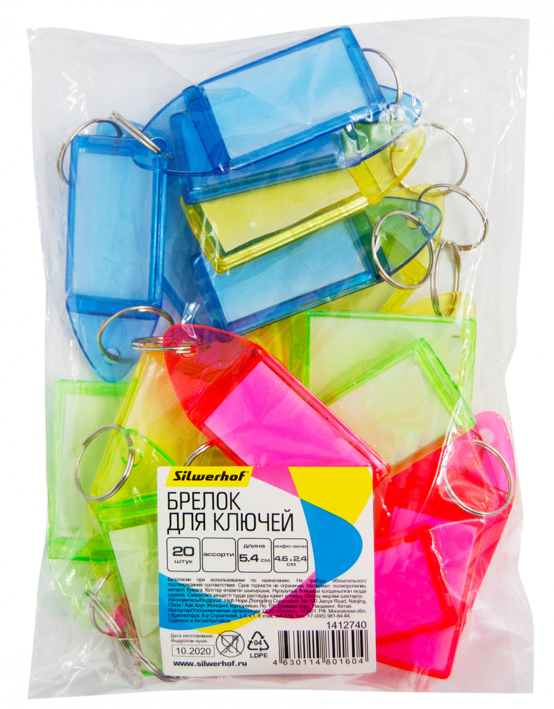 Бирка для ключей Silwerhof 1412740 инфо-окно ассорти (упак.:20шт) пластиковый пакет