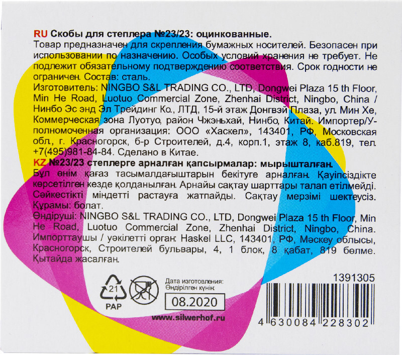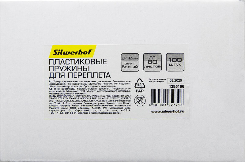 Пружины для переплета пластиковые Silwerhof d14мм 81-100лист A4 белый (100шт) (1373588)