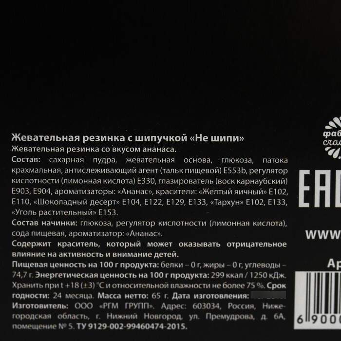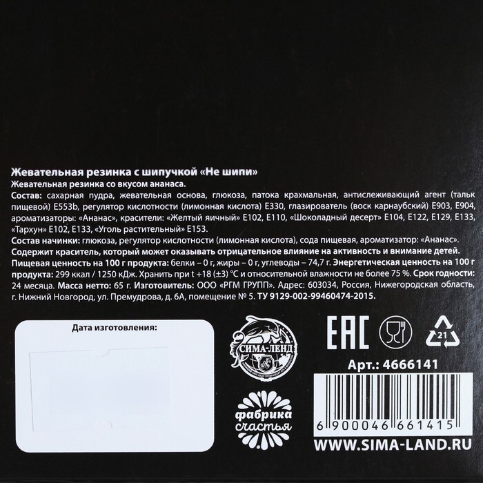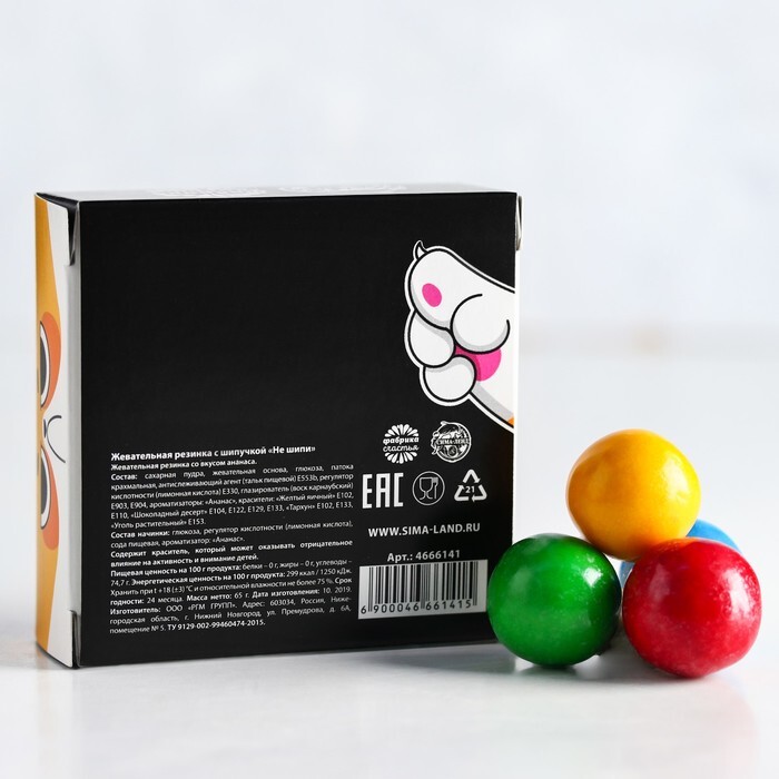 Жевательная резинка с шипучкой Не шипи: со вкусом тутти-фрутти, 65 г.