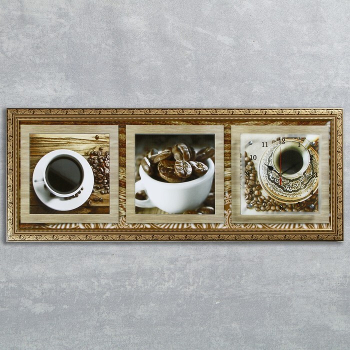 Часы-картина , серия: Кухня, Кофейные зерна, 35 х 100 см,