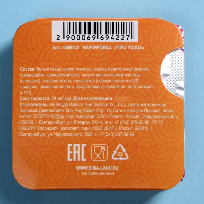 Жевательная резинка Анти-прибухнин апельсин, 14.г