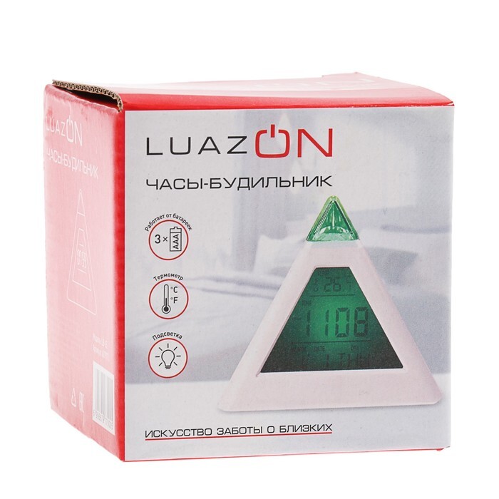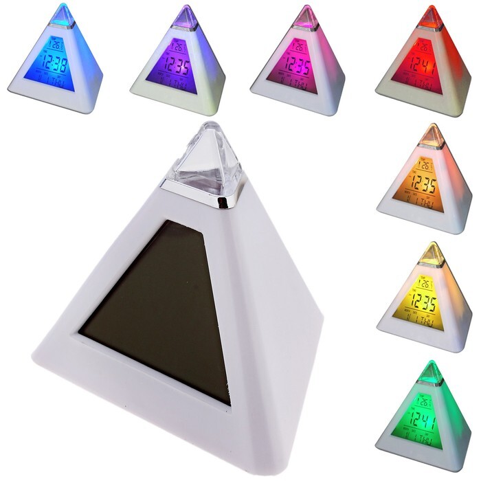 Будильник LB-05 Пирамида, 7 цветов дисплея, термометр, подсветка,