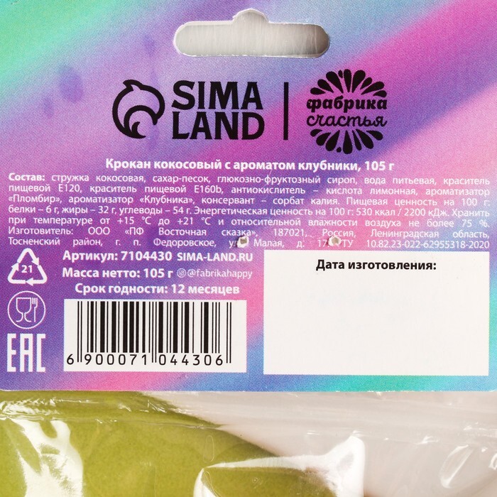 Крокан Пусть всё будет клубнично кокосовый с клубникой, 105 г.