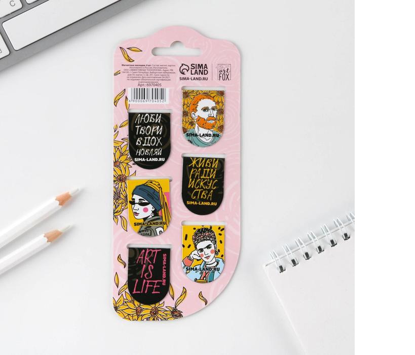 Закладки магнитные на подложке для книг/ Набор закладок для книг 6 штук