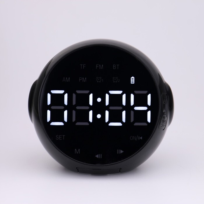 Часы настольные электронные, белая индикация, с колонкой, 8 х 8.5 х 6 см