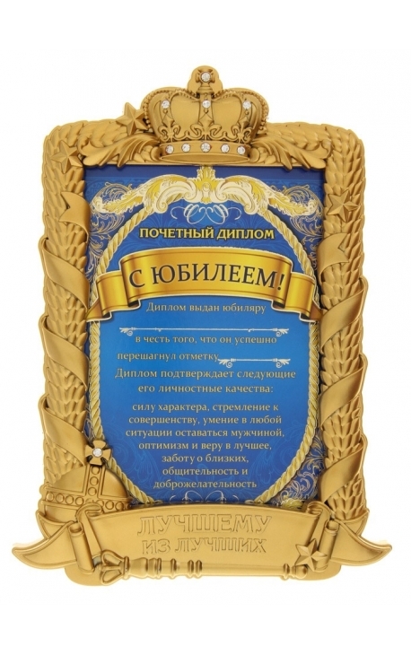 Диплом в рамке "С юбилеем" лучшему из лучших