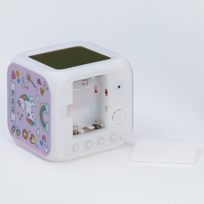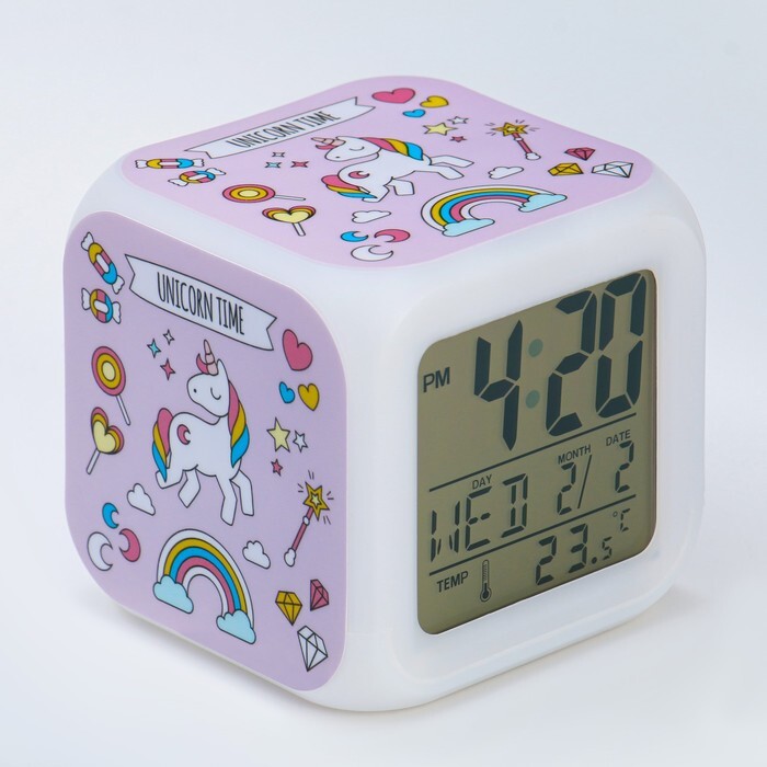 Часы настольные электронные Единорог с подсветкой, будильник,термометр,календарь, 8х8 см