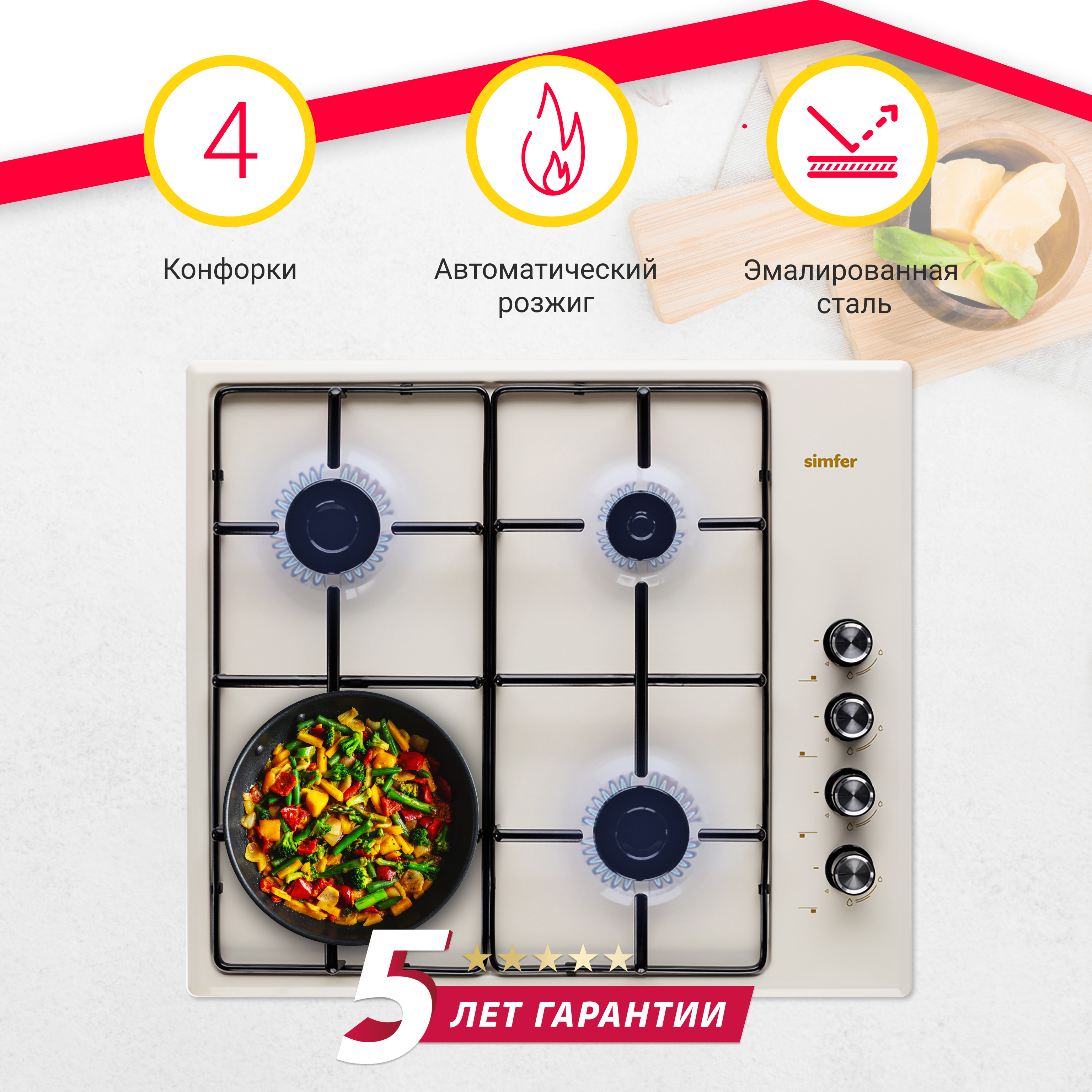 Газовая варочная панель Simfer H60Q40B400, бежевый