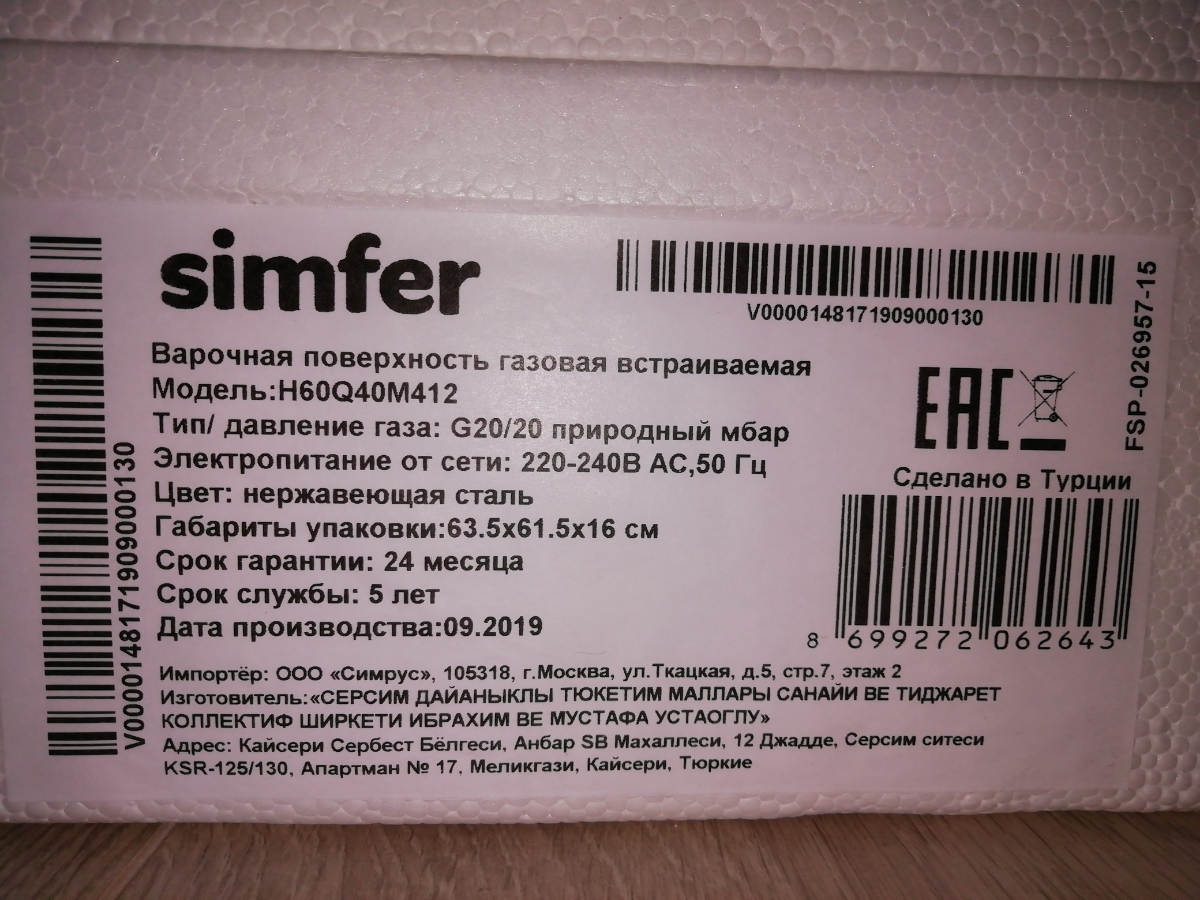 Газовая варочная панель Simfer H60V40M411, серебристый