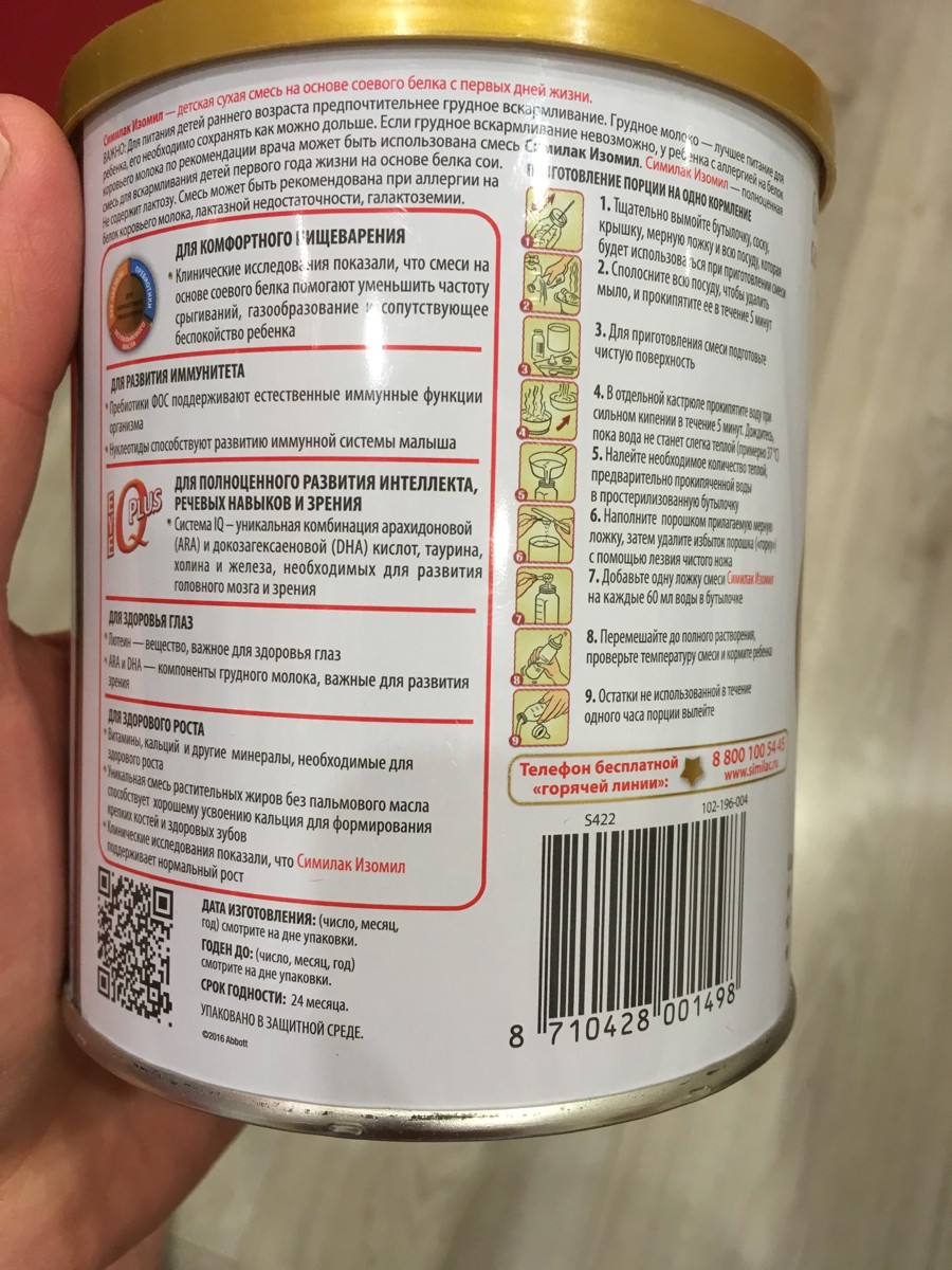 Молочная смесь Similac Изомил, на основе изолята белков сои, с рождения, 400 г