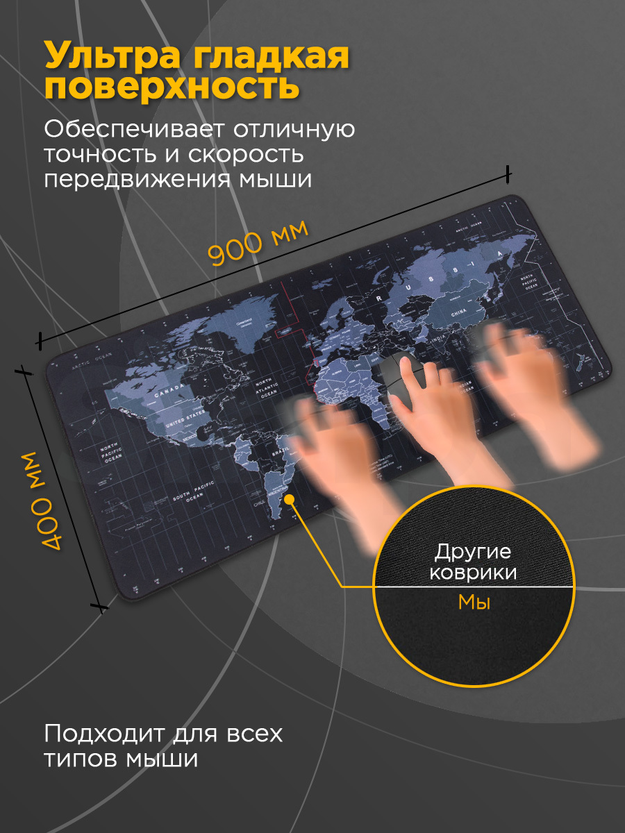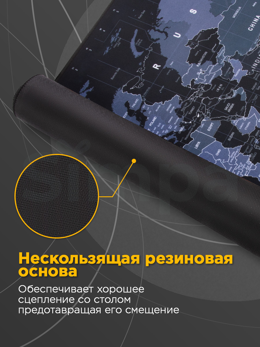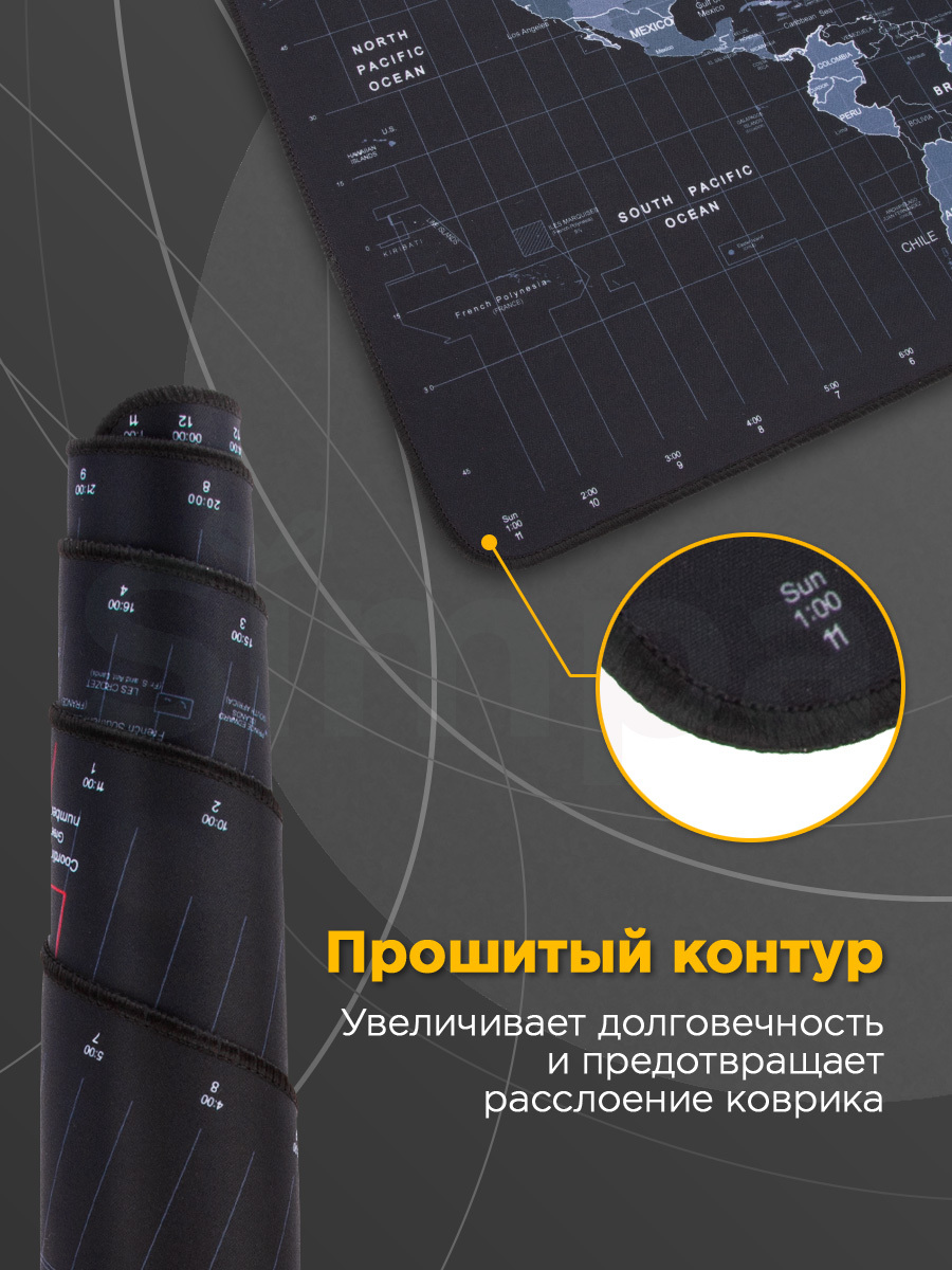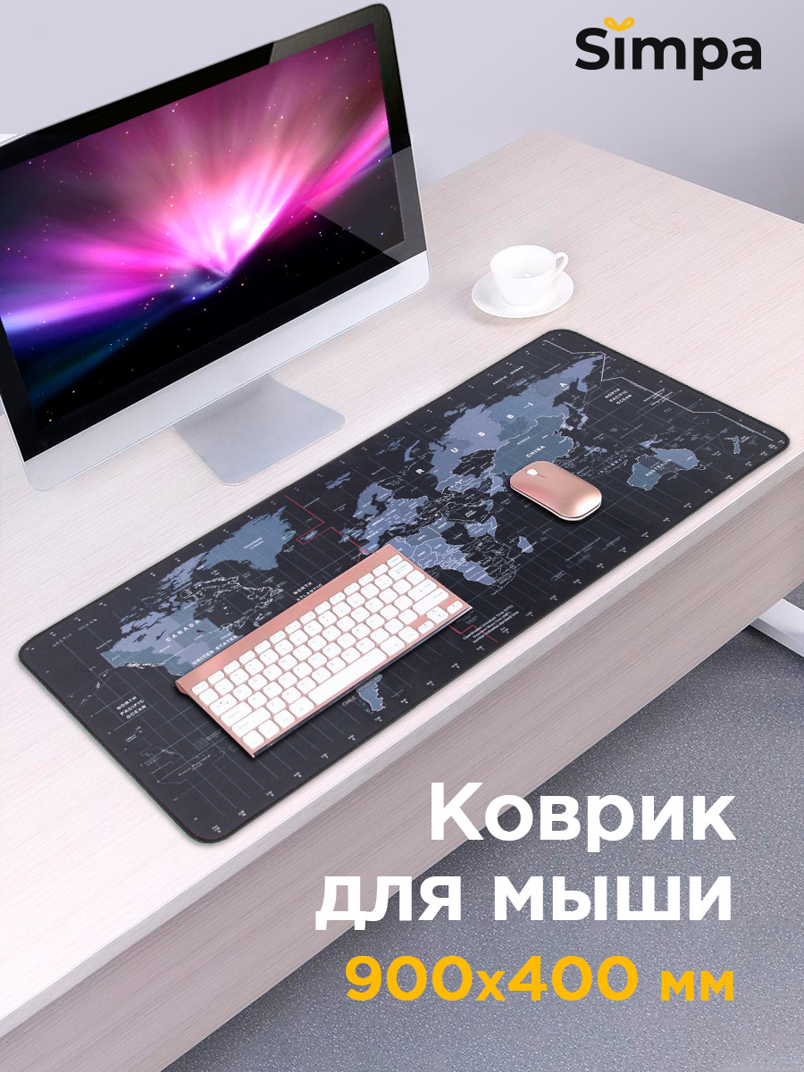Коврик для мыши, Игровой коврик для мыши Simpa Карта Мира, черный