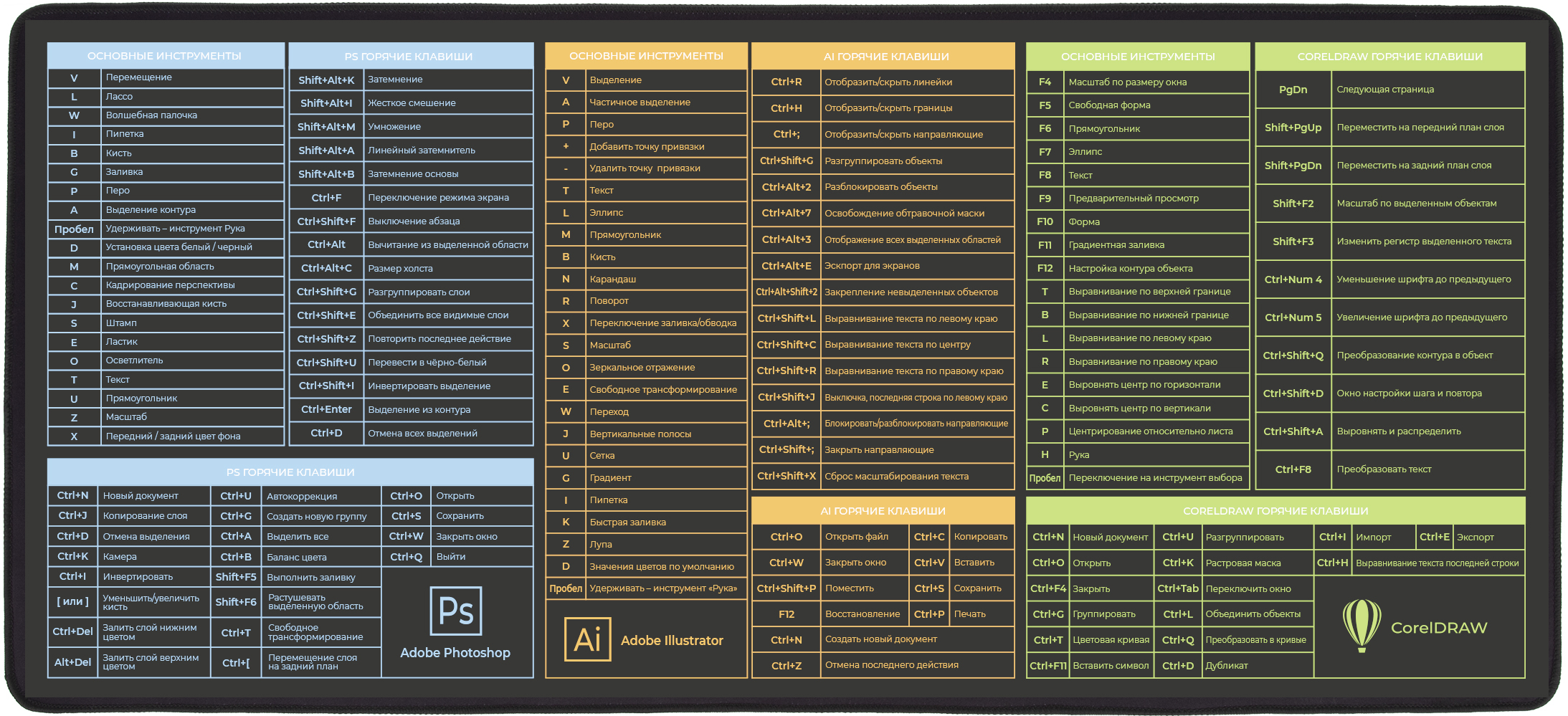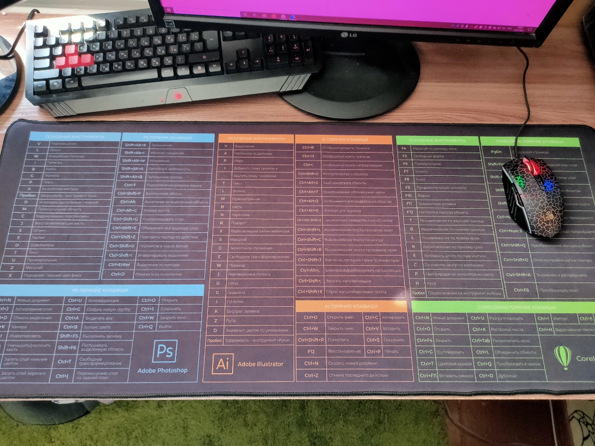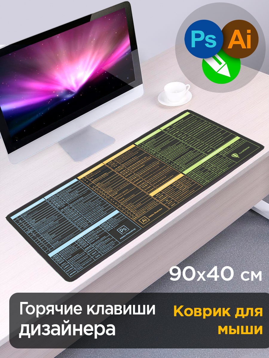 Игровой коврик для мыши, Коврик для мыши Simpa Горячие клавиши дизайнера, черный