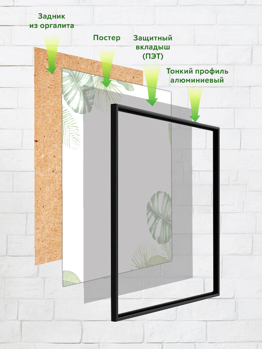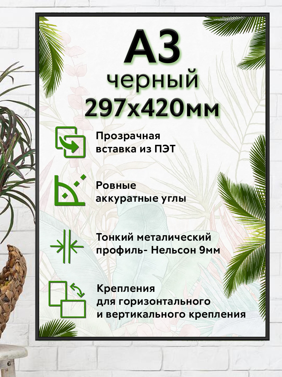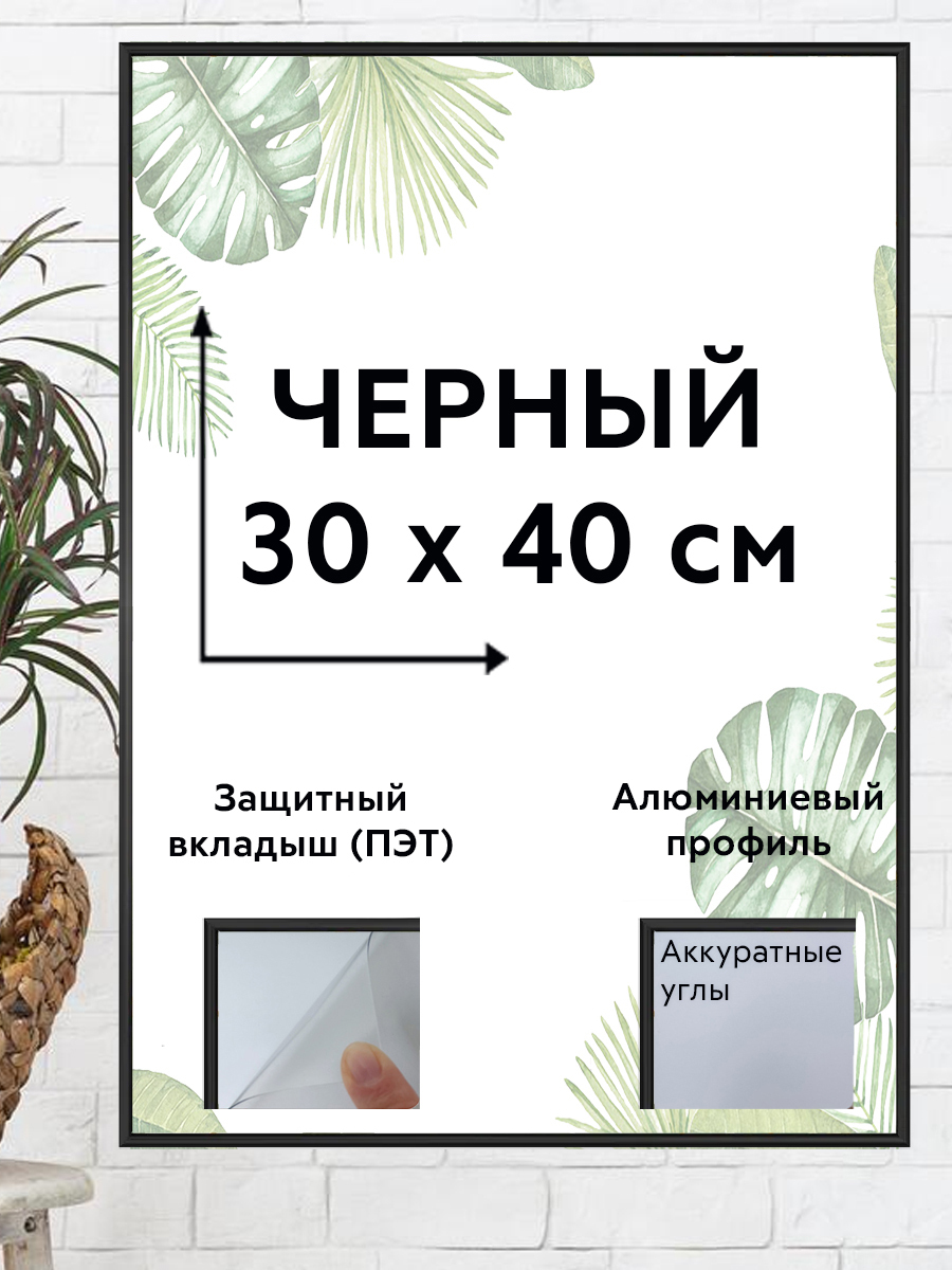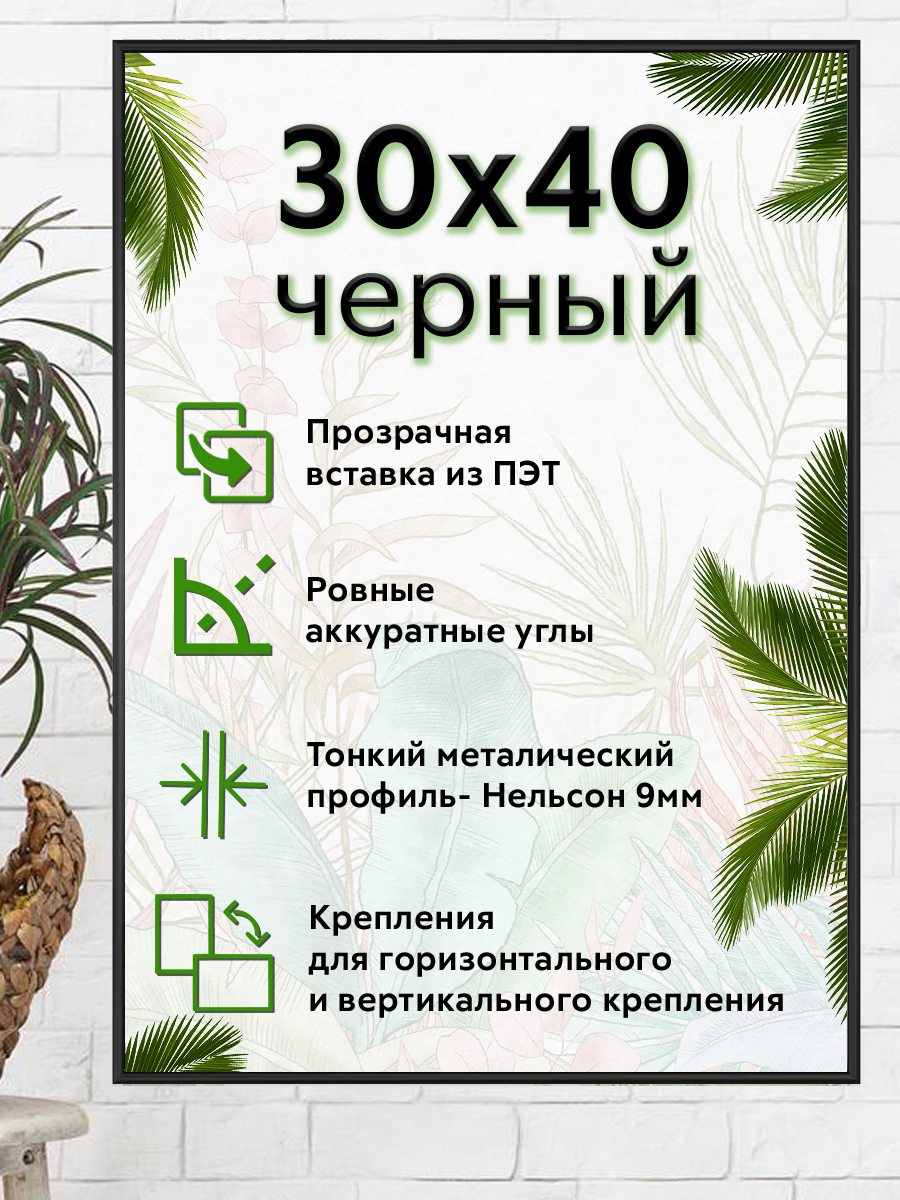 Фоторамка Симпл "алюминиевая Нельсон, 30х40 см", металлическая, черная, для дома, интерьера, пазлов