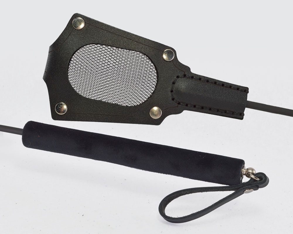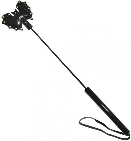 Стек с черным лаковым кожаным шлепком в виде летучей мыши - 60 см., Sitabella, черный