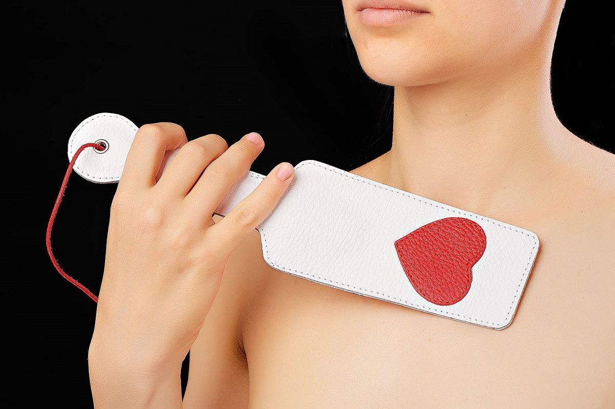 Красная плеть с кожаной рукояткой и замшевыми лентами
