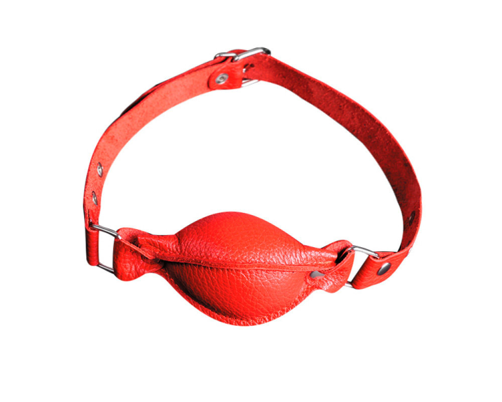 Классический кляп из натуральной кожи красного цвета вытянутой формы
