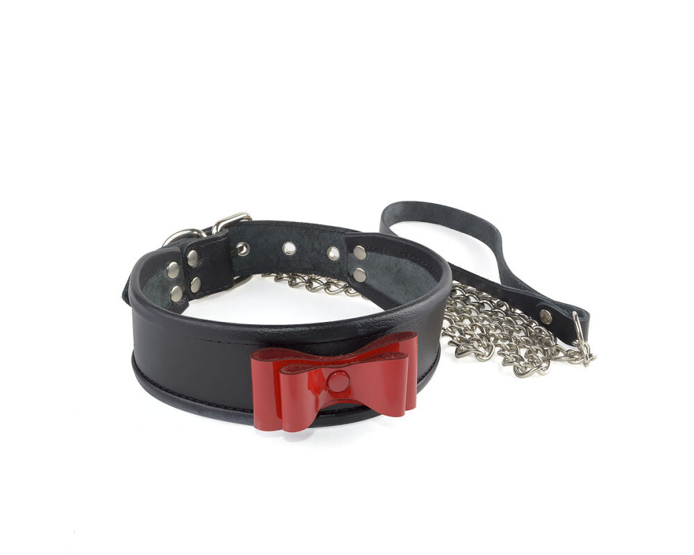 Кожаный Ошейник с красным бантиком из лаковой кожи