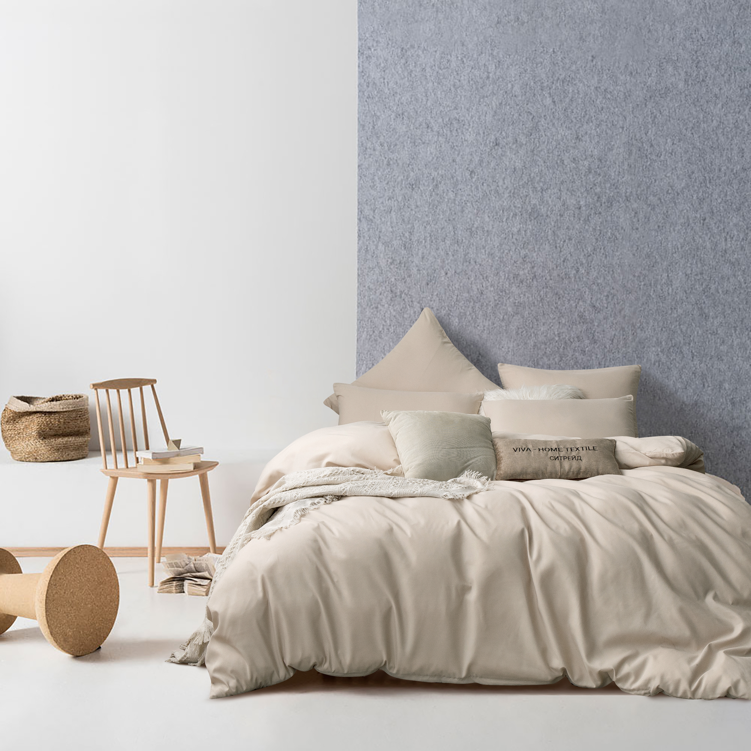 Комплект постельного белья СИТРЕЙД Песочный Евро, Сатин, наволочки 50x70, 70x70