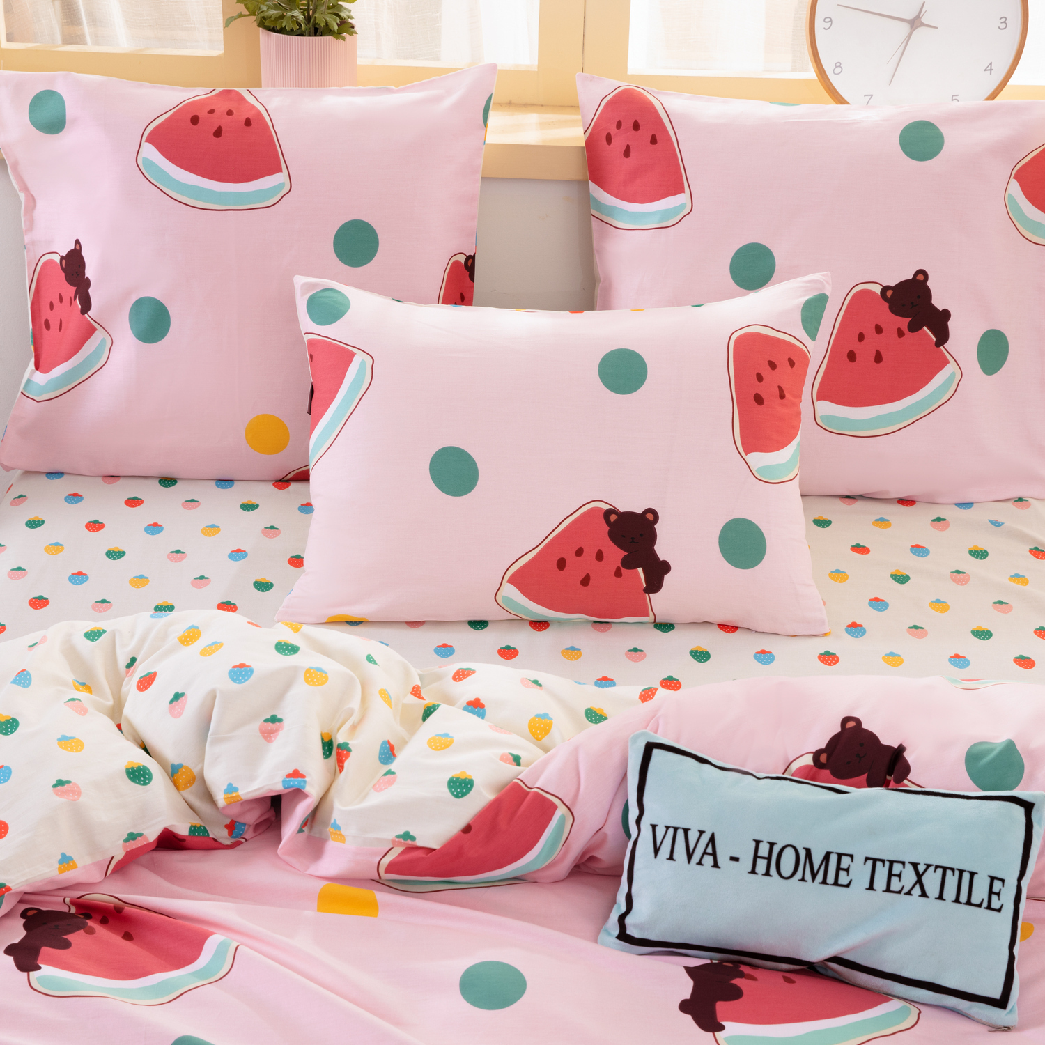Комплект постельного белья СИТРЕЙД Нежный арбуз 2-x спальный, Сатин люкс, наволочки 70x70