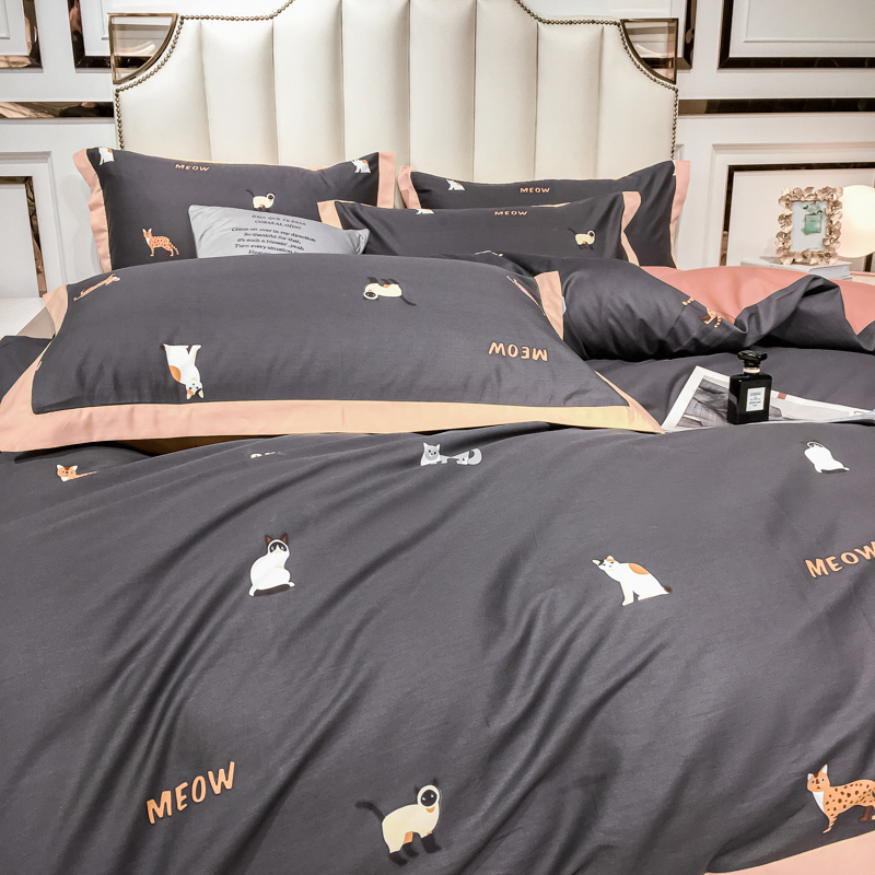 Комплект постельного белья СИТРЕЙД Кошки надпись, Сатин, наволочки 50x70, 70x70