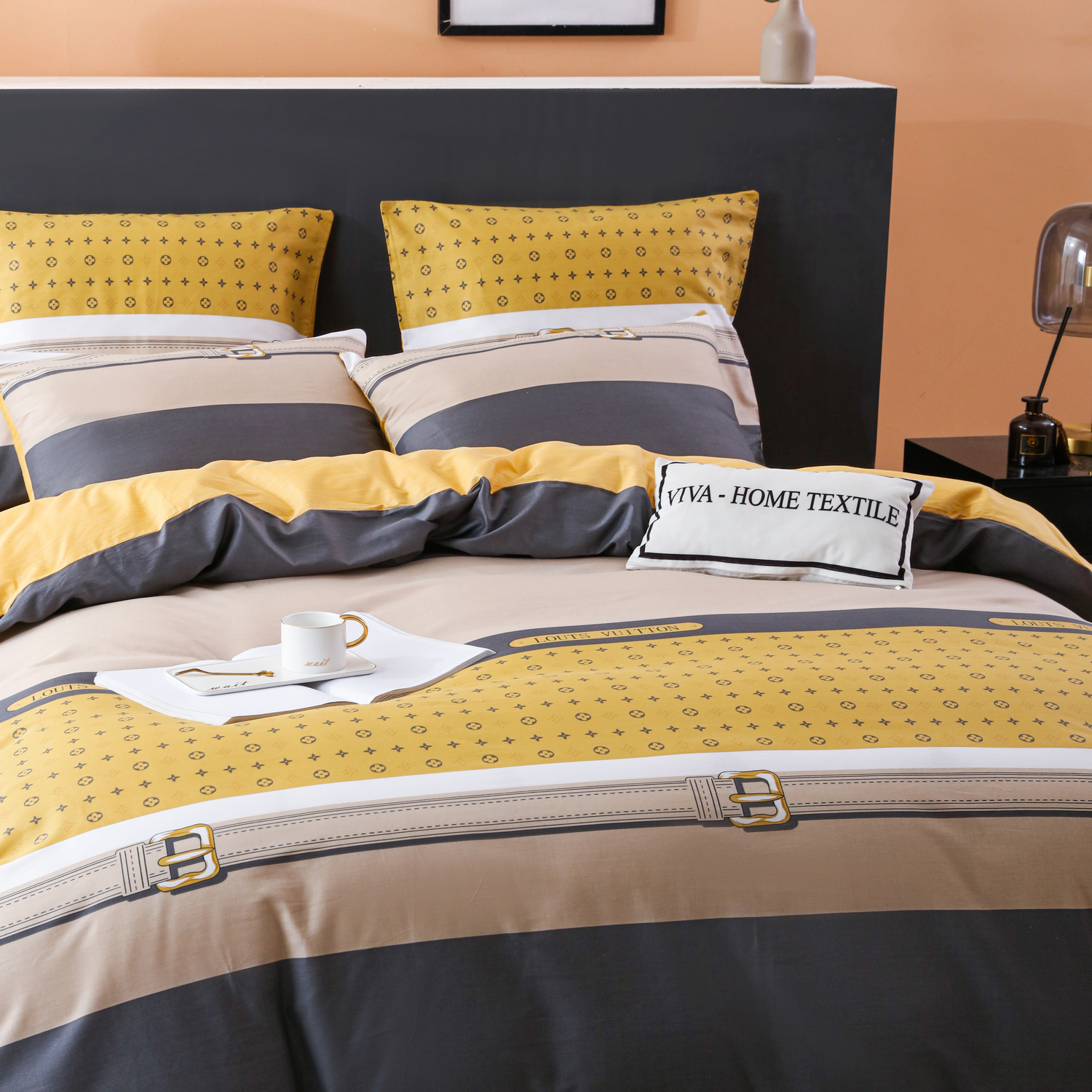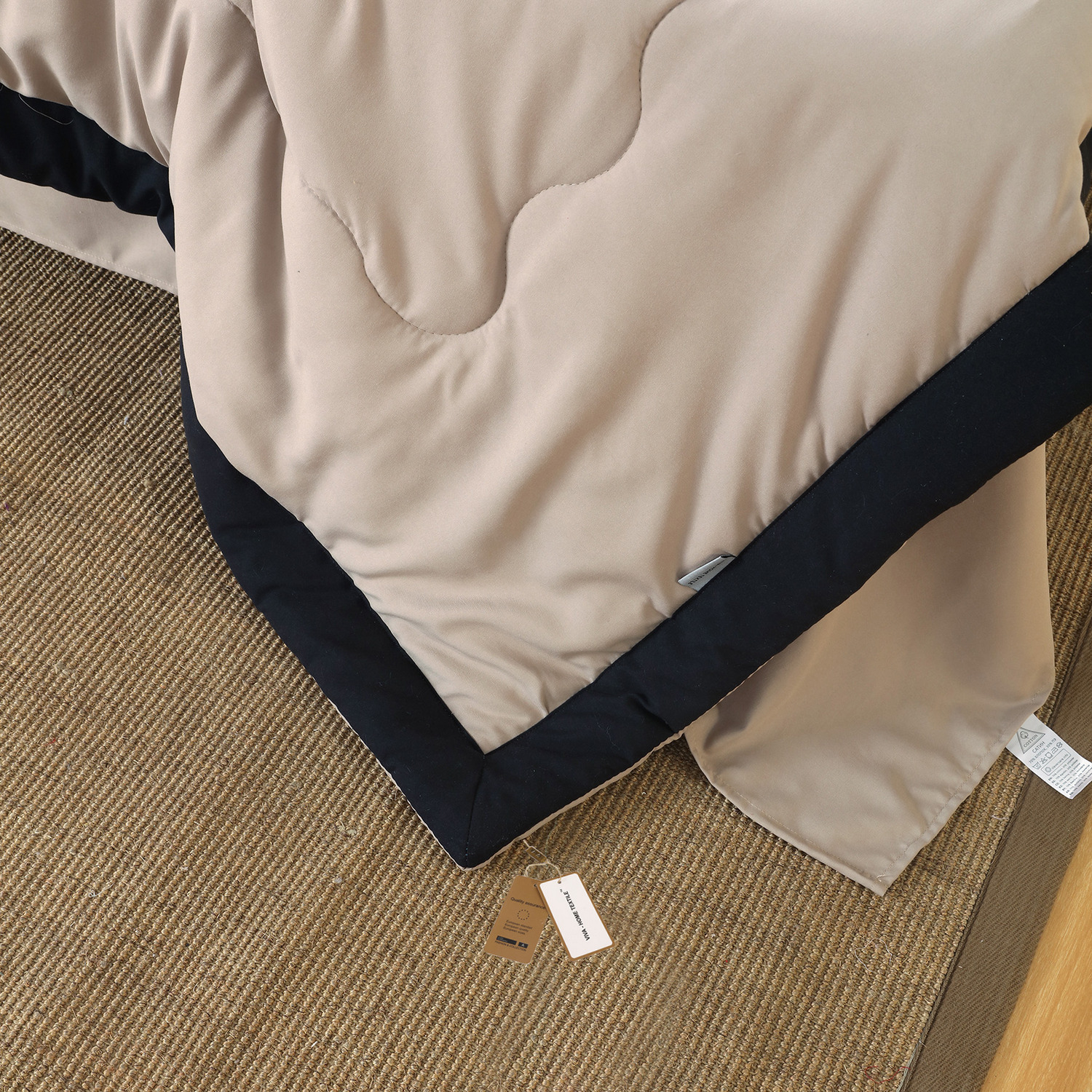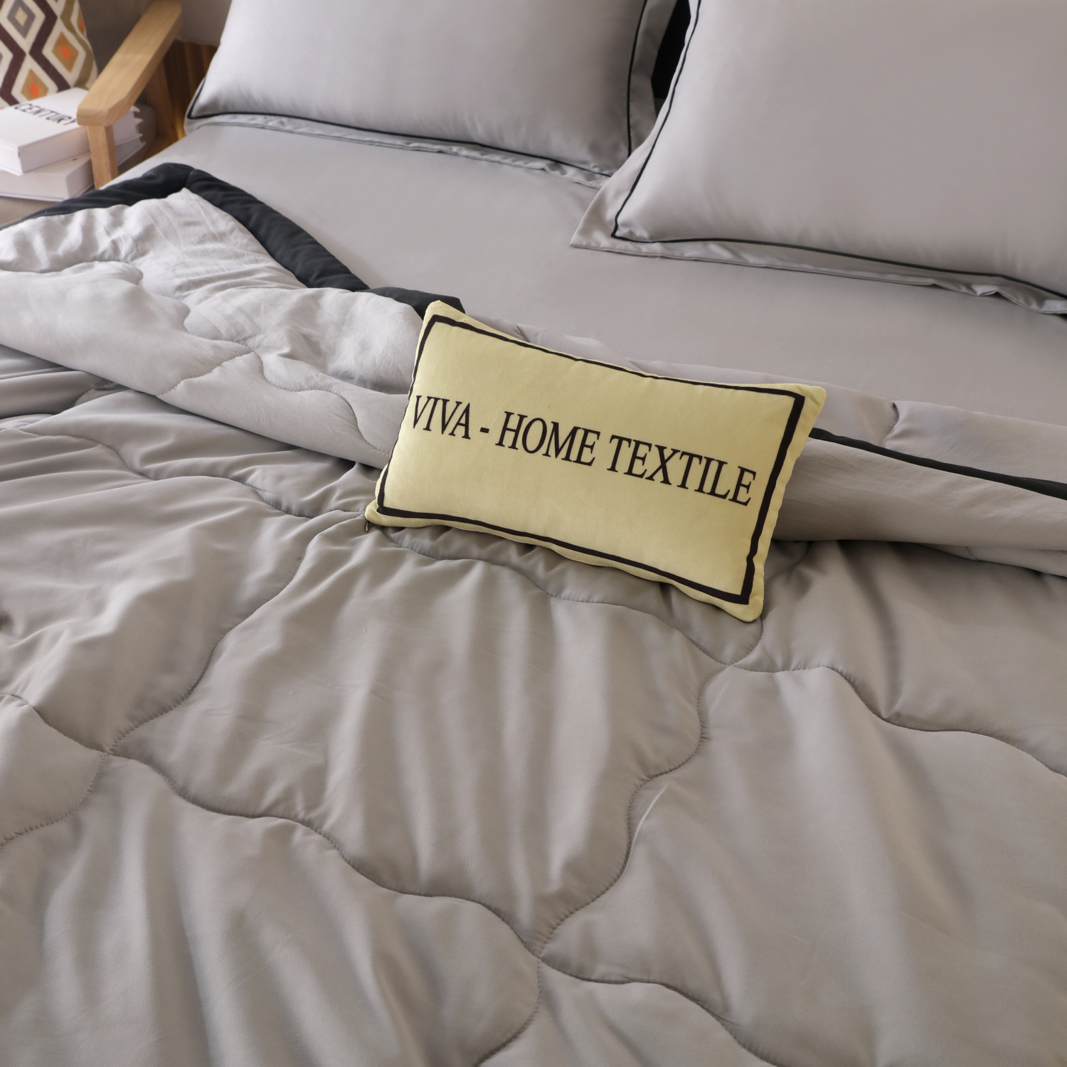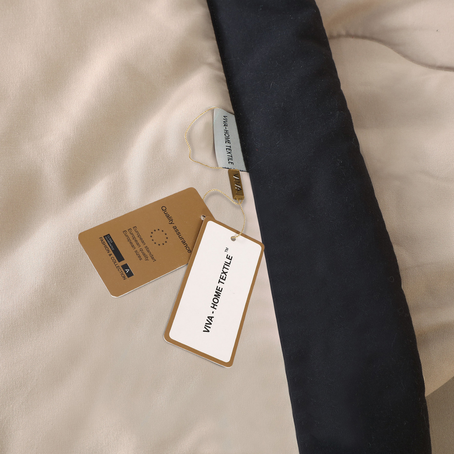 Комплект постельного белья с одеялом СИТРЕЙД Кремово-черный Евро, Смесовая ткань, наволочки 50x70
