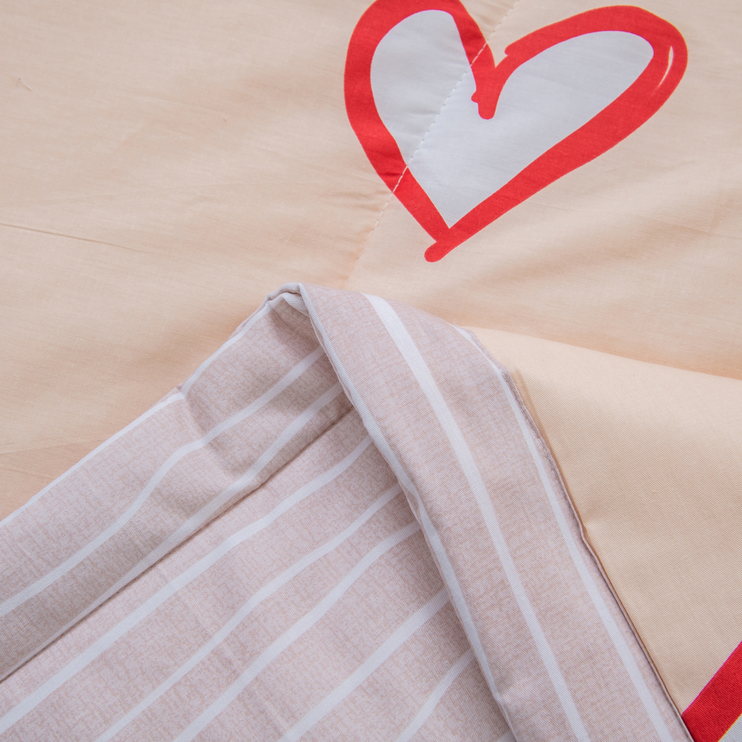 Комплект постельного белья с одеялом СИТРЕЙД Кремово-розоватый Евро, Сатин, наволочки 50x70