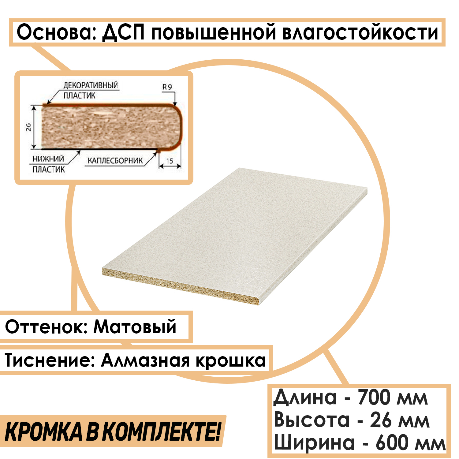Столешница для кухни Скиф 500х600x26мм с кромкой. Цвет - Королевский опал светлый