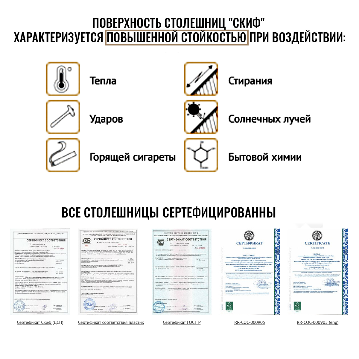 Столешница для кухни Скиф 800х600x26мм с кромкой. Цвет - Королевский опал светлый
