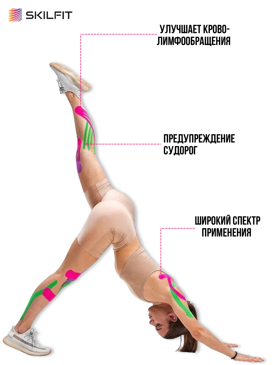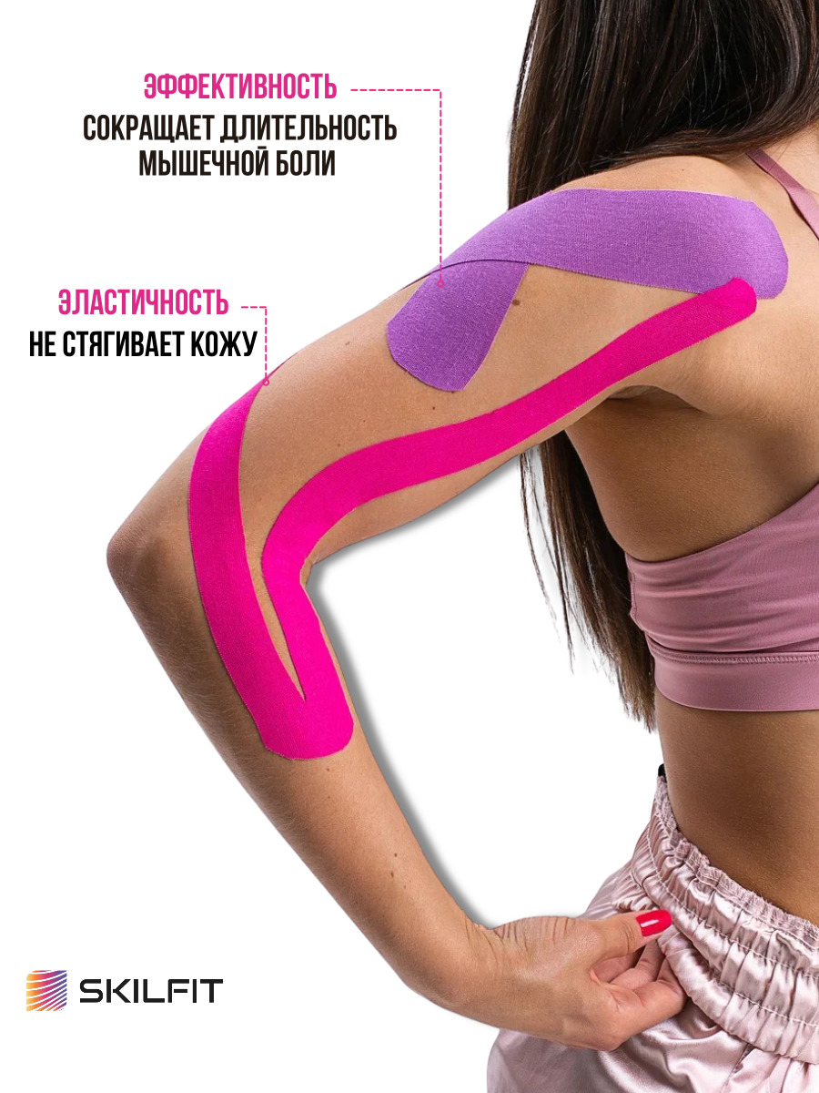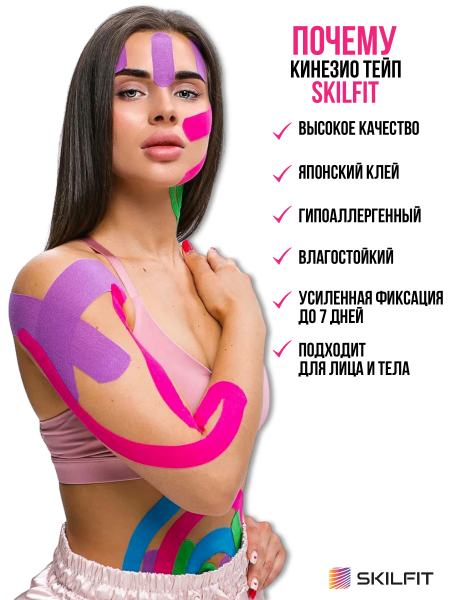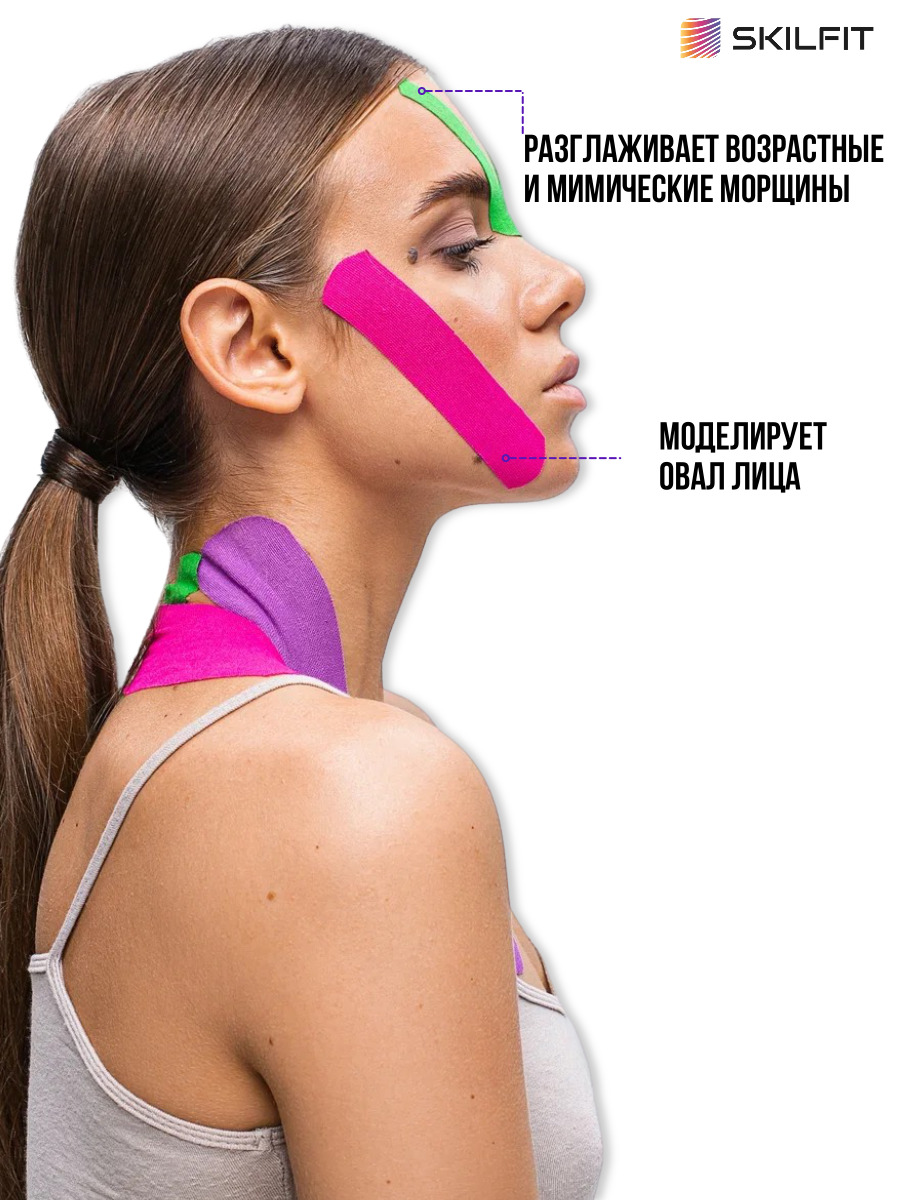 Кинезиотейп SKILFIT для лица / Тейпирование для спорта и фитнес / Тейпы от морщин / Тейп для футбола 5см Х 5 м, фиолетовый