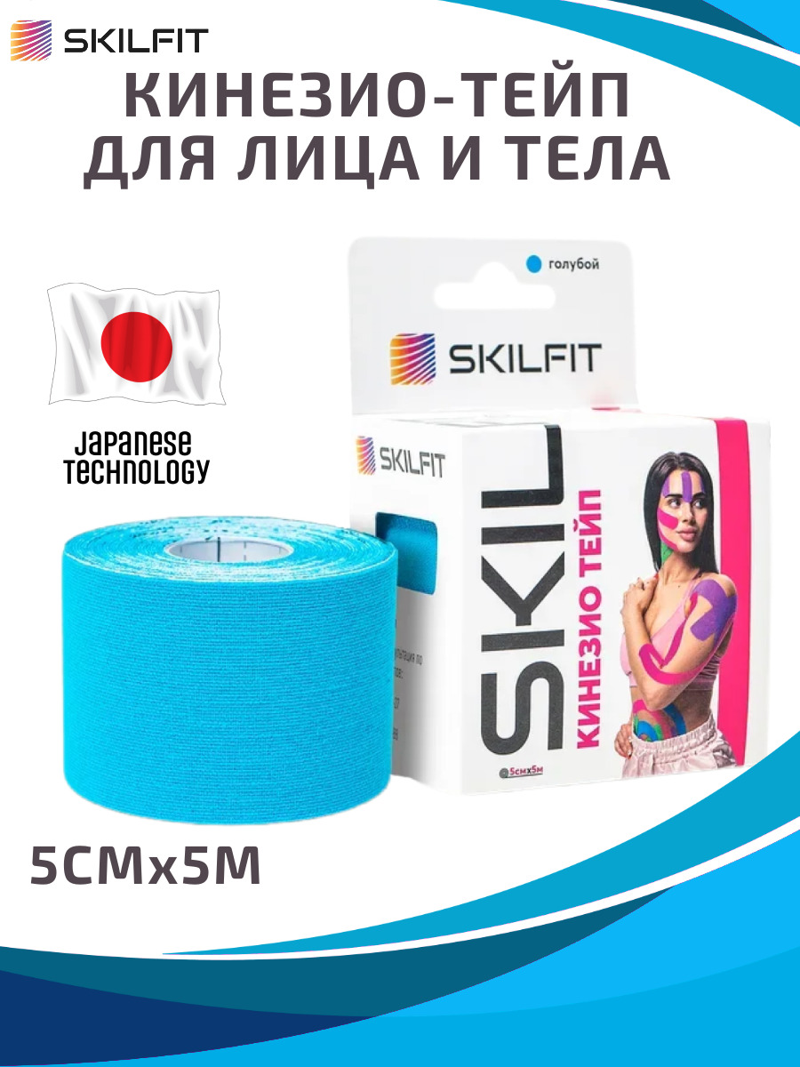 Кинезиотейп SKILFIT Скилфит для лица / Тейпирование для спорта и фитнес / Тейпы от морщин / Тейп для футбола 5см Х 5 м, голубой