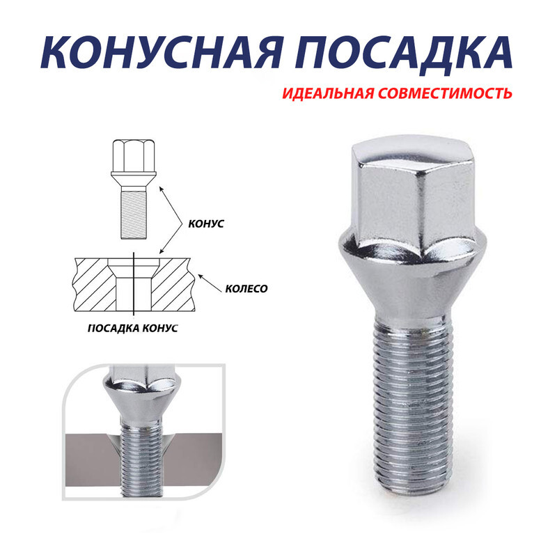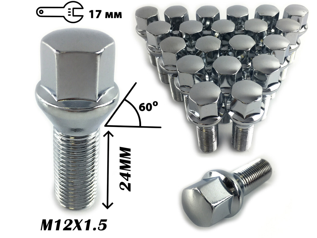 Болт колесный М12 х 1,5 24 17 мм, 20 шт.