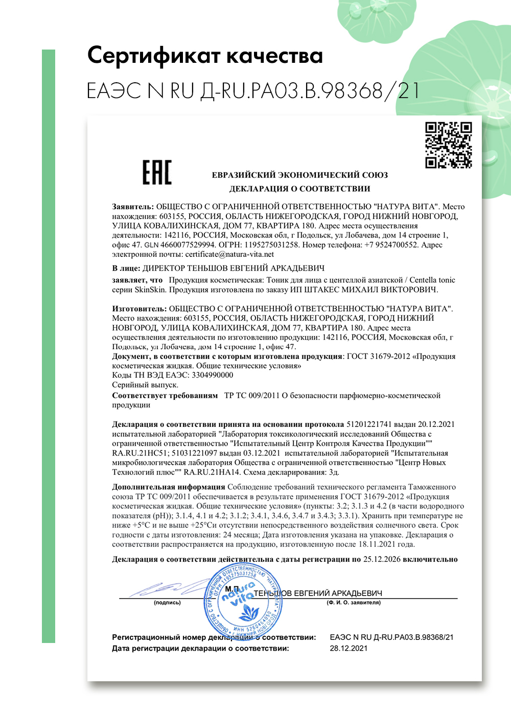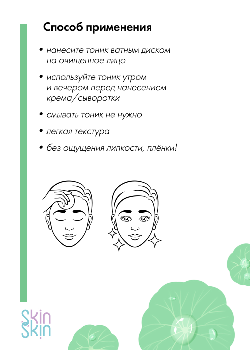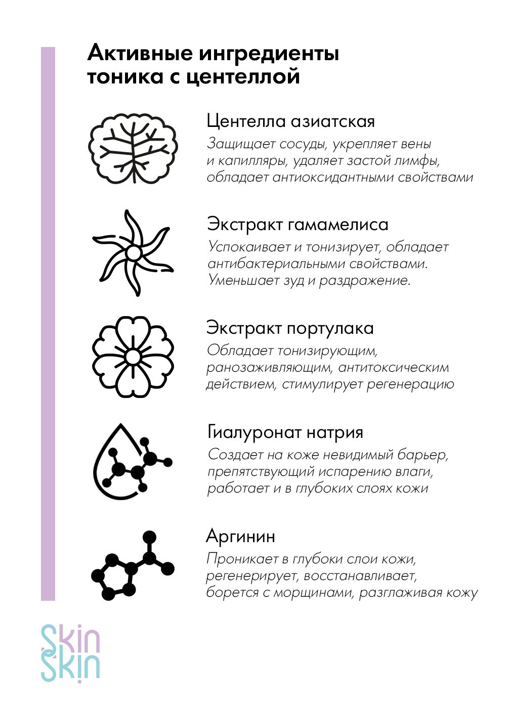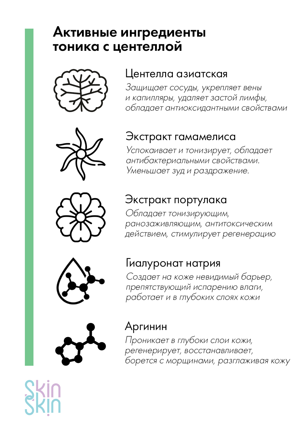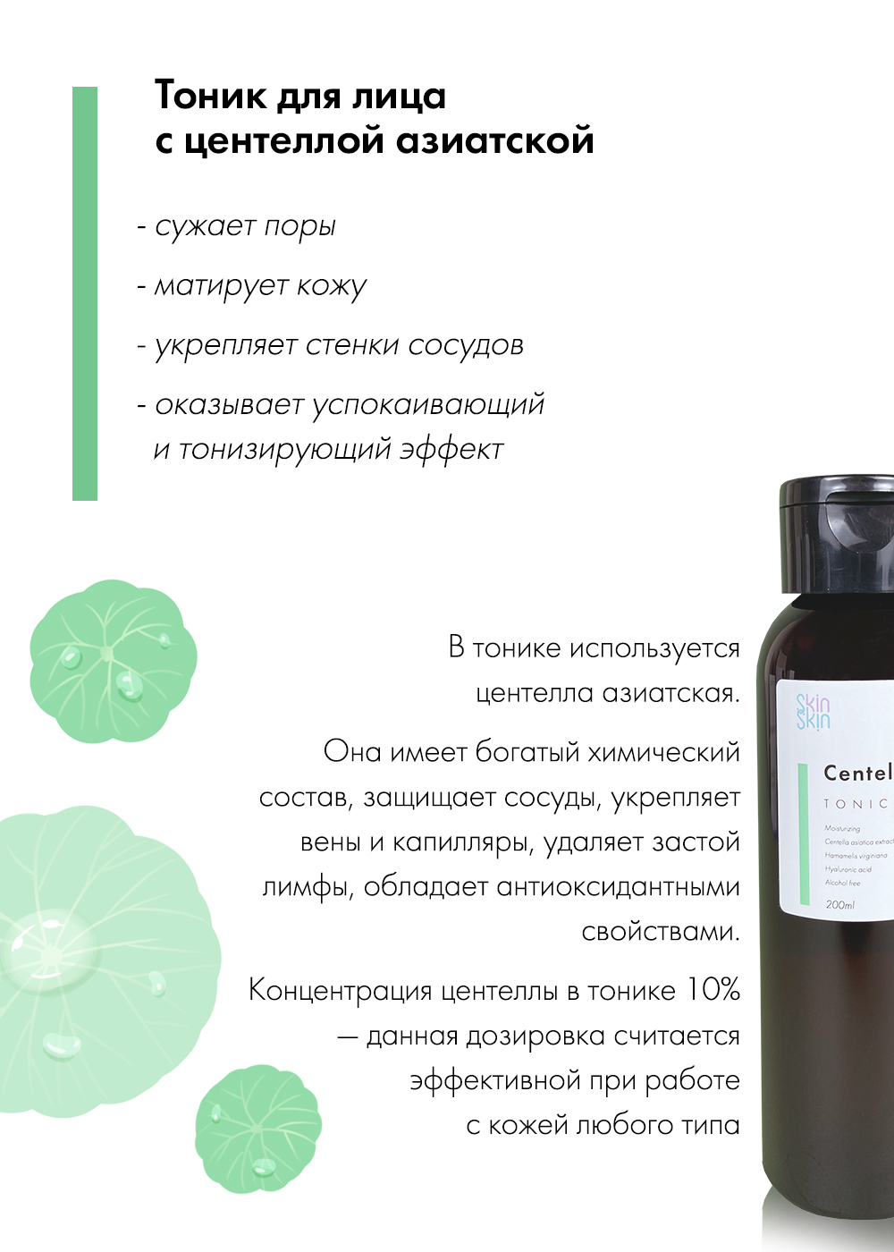 SkinSkin Tonic Centella тоник для лица (с экстрактом центеллы азиатской 10% и гамамелисом) - 200мл.