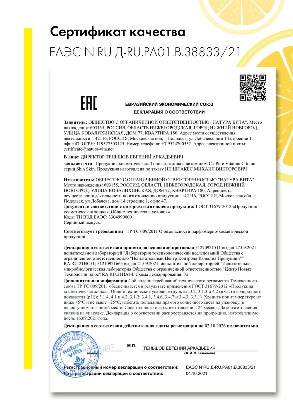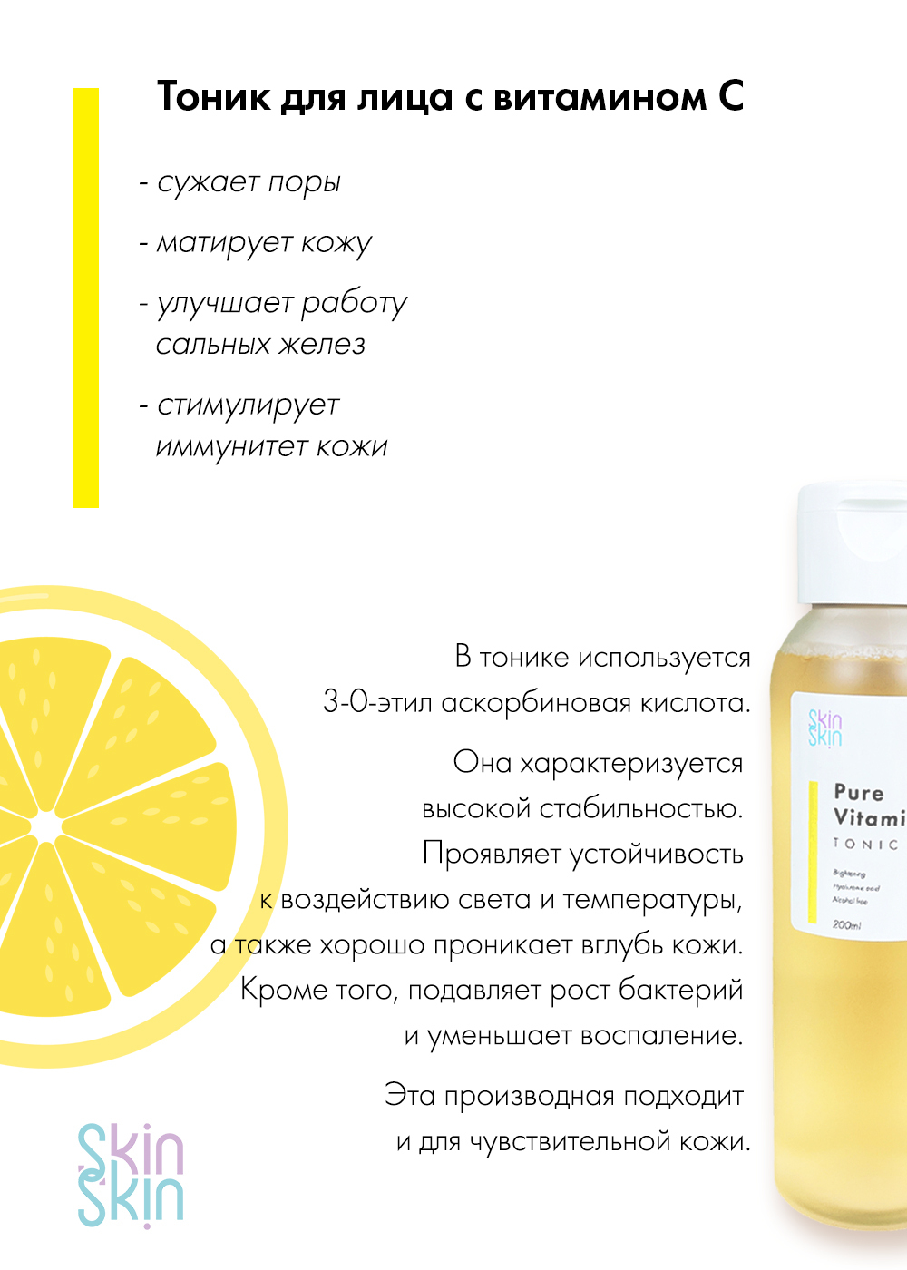 SkinSkin Tonic Pure Vitamin C тоник для лица (с витамином С) - 200мл.