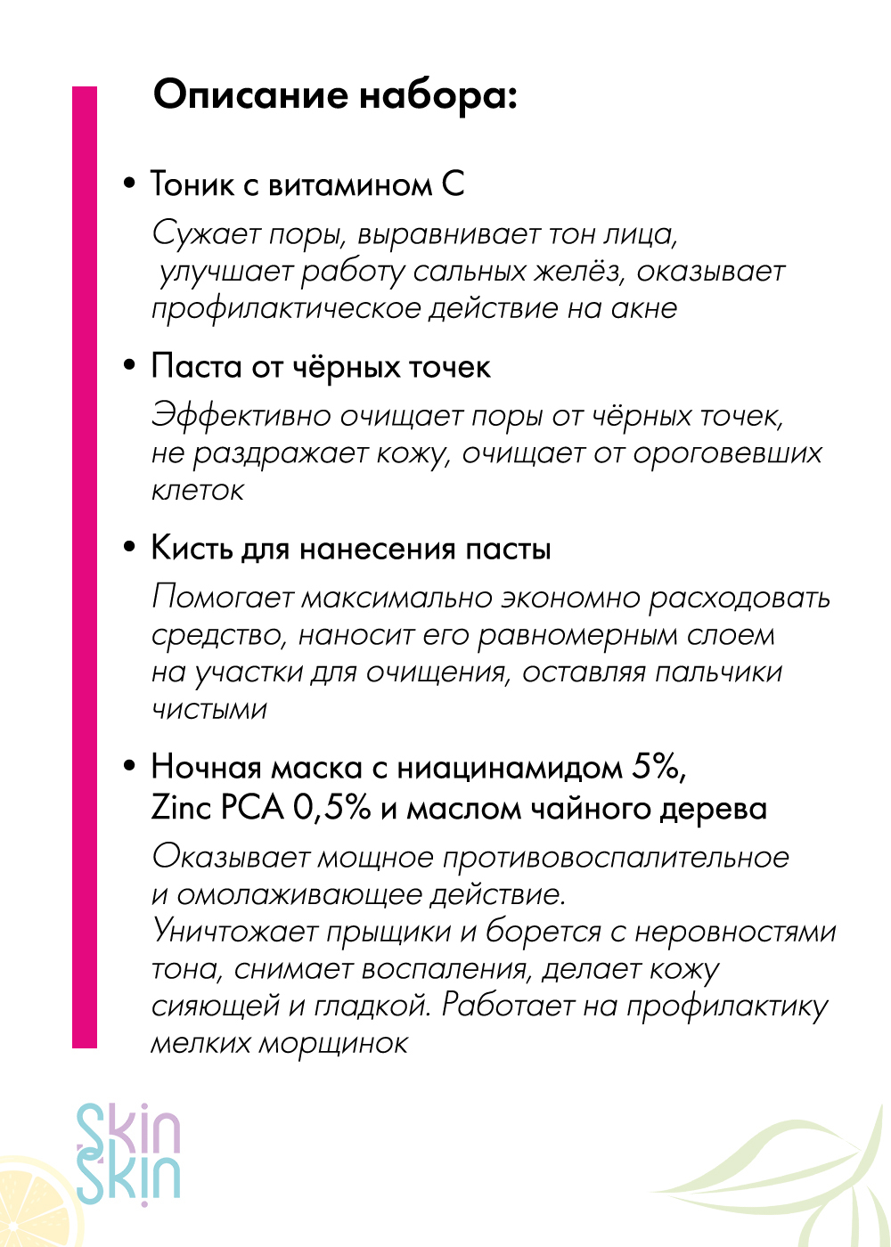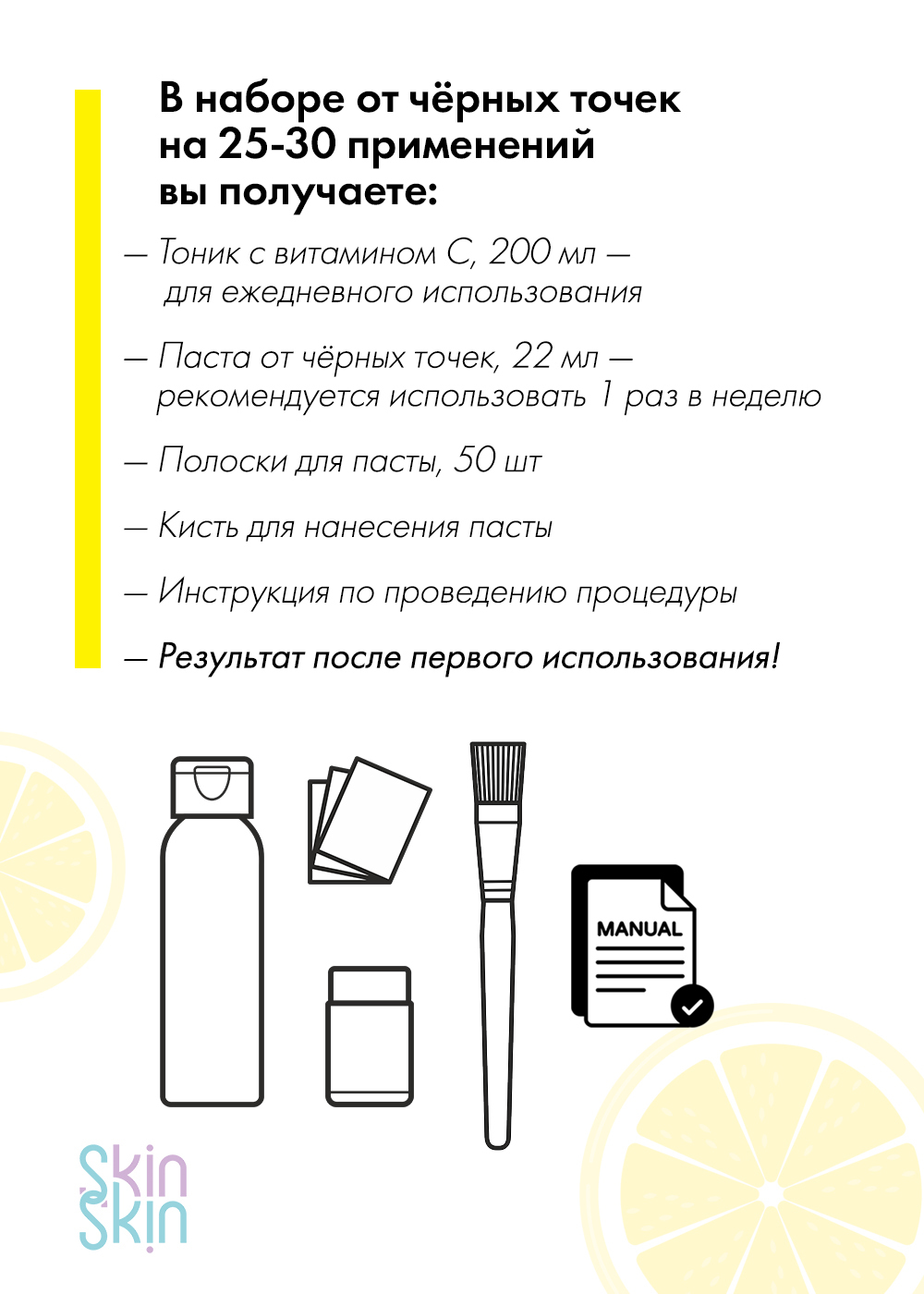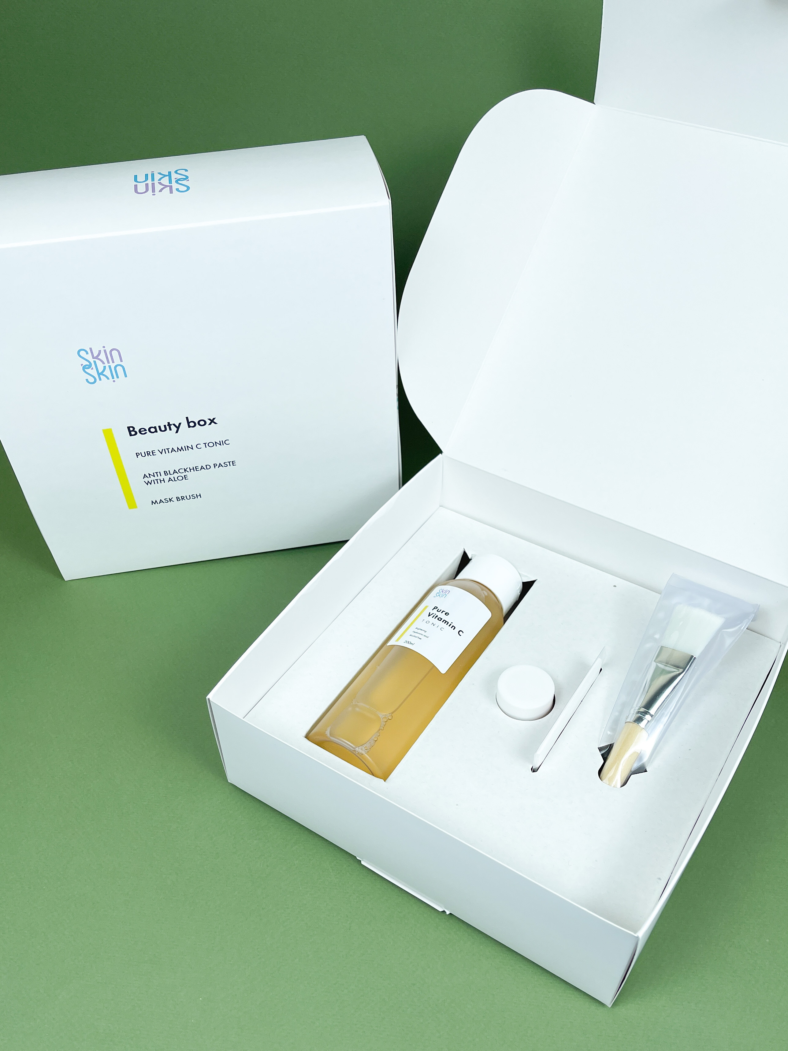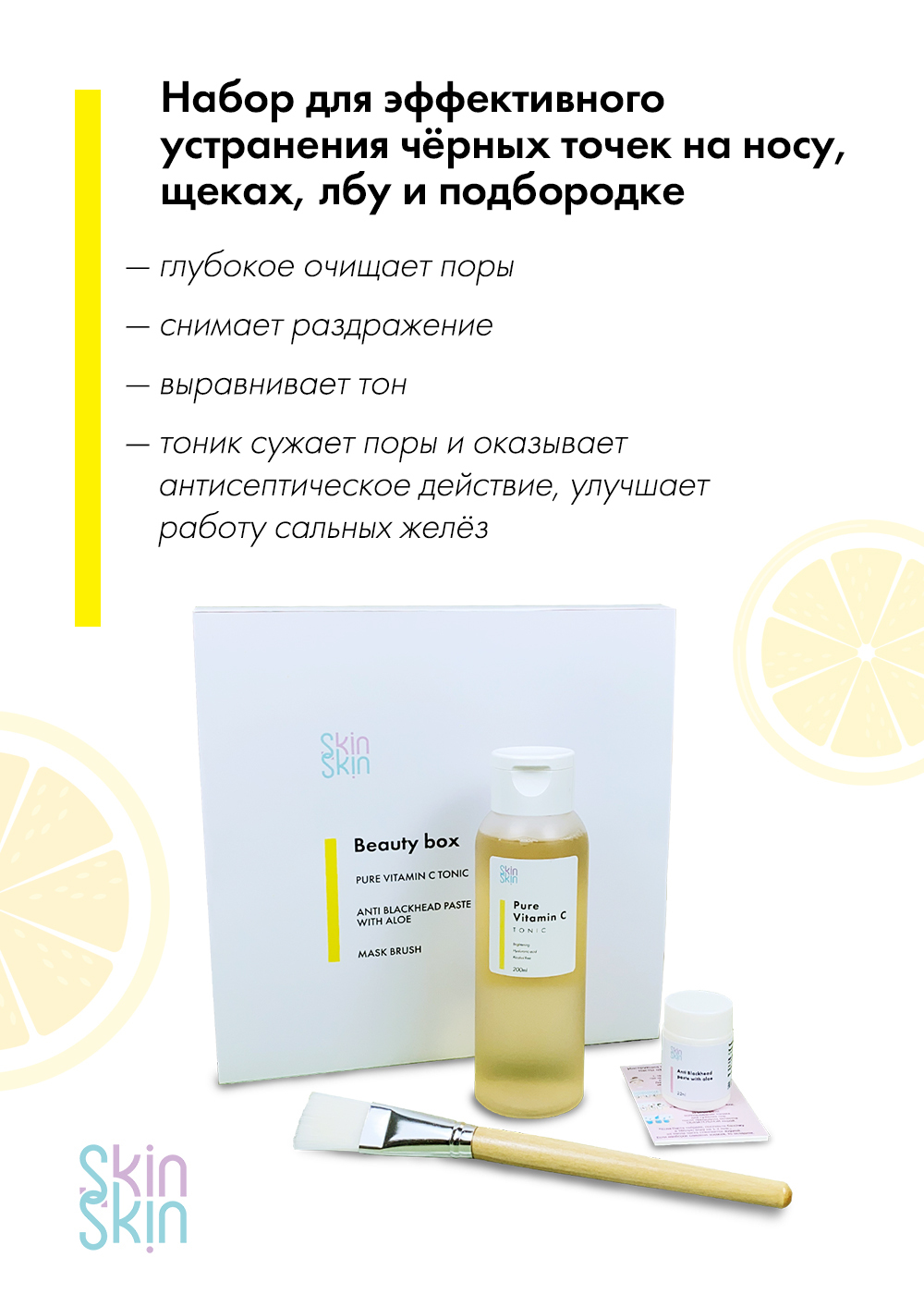 SkinSkin Beauty Box Vitamin C - Набор от чёрных точек (тоник с витамином С, паста от чёрных точек, кисть для нанесения пасты)