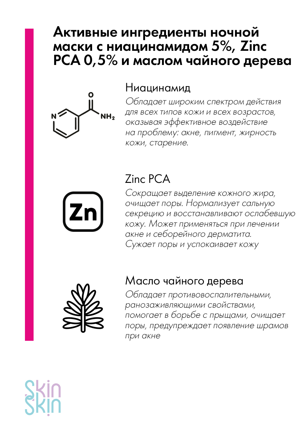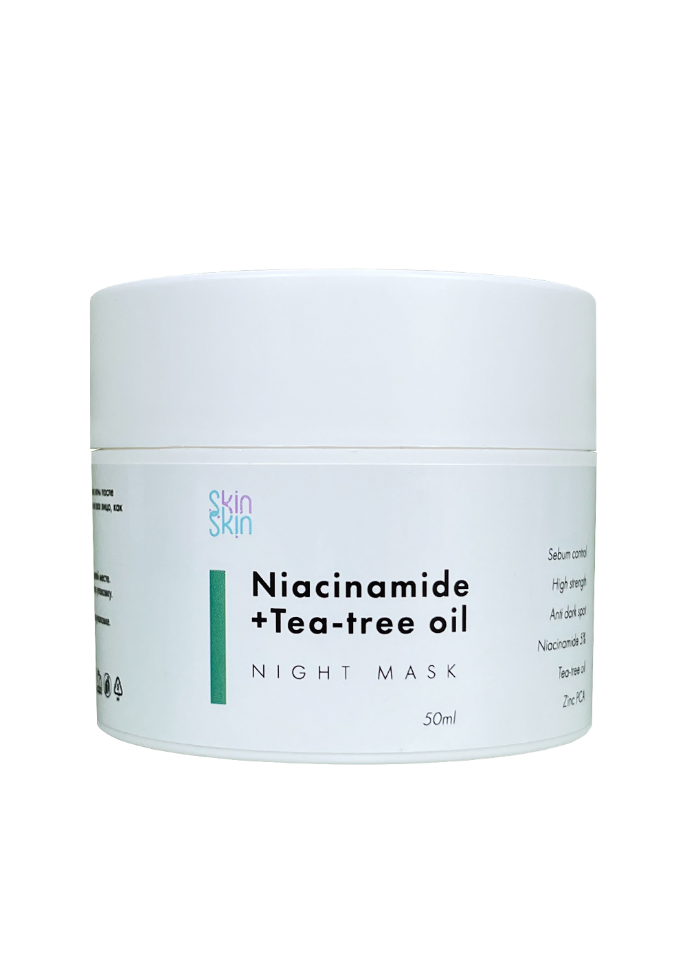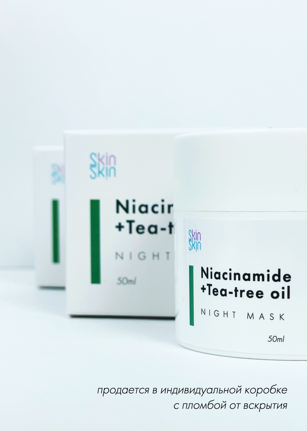 SkinSkin Night mask + Niacinamide, tee tree oil ночная крем-маска для проблемной кожи лица - 50мл