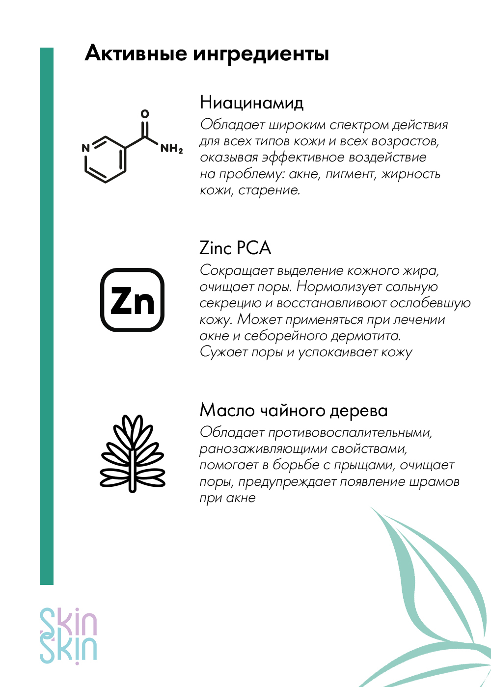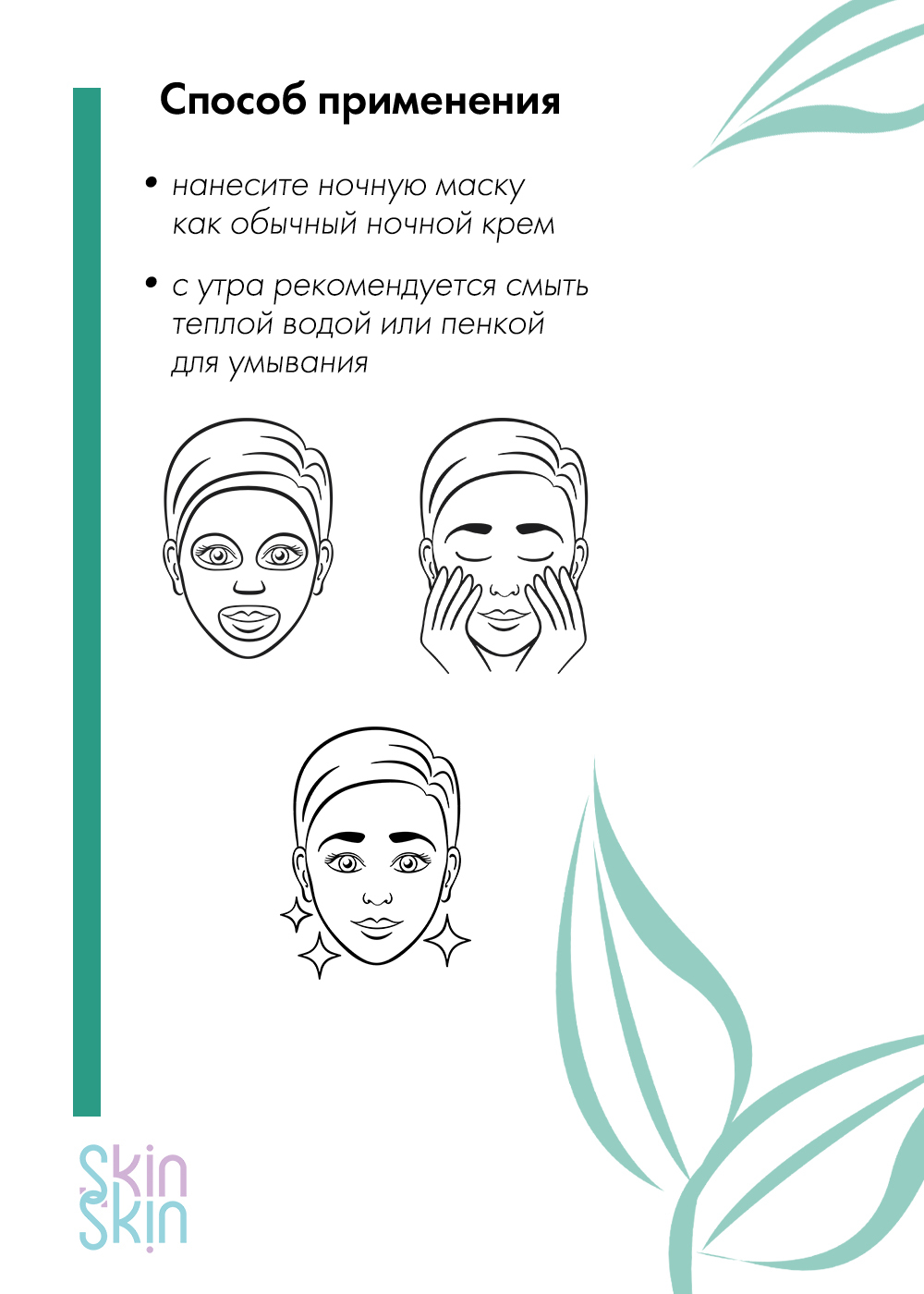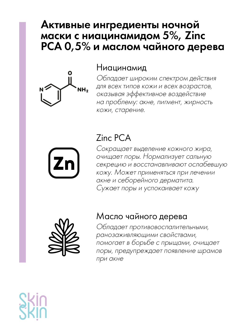 SkinSkin Night mask + Niacinamide, tee tree oil ночная крем-маска для проблемной кожи лица - 50мл
