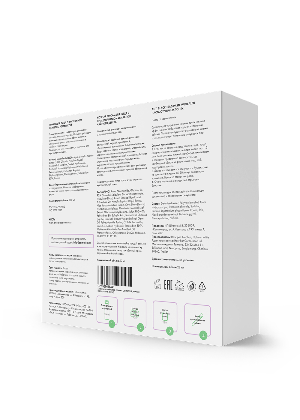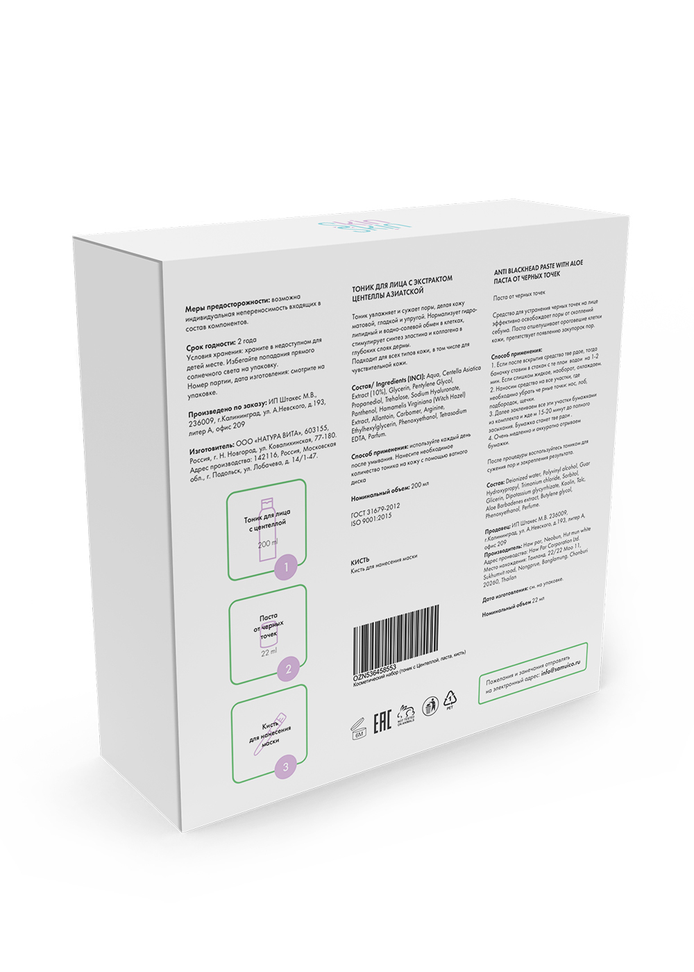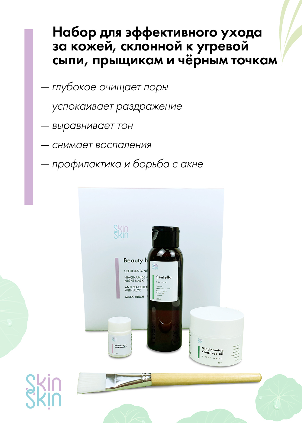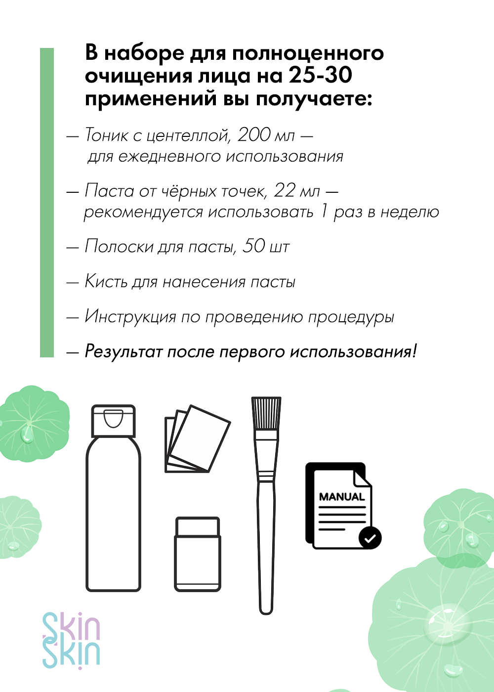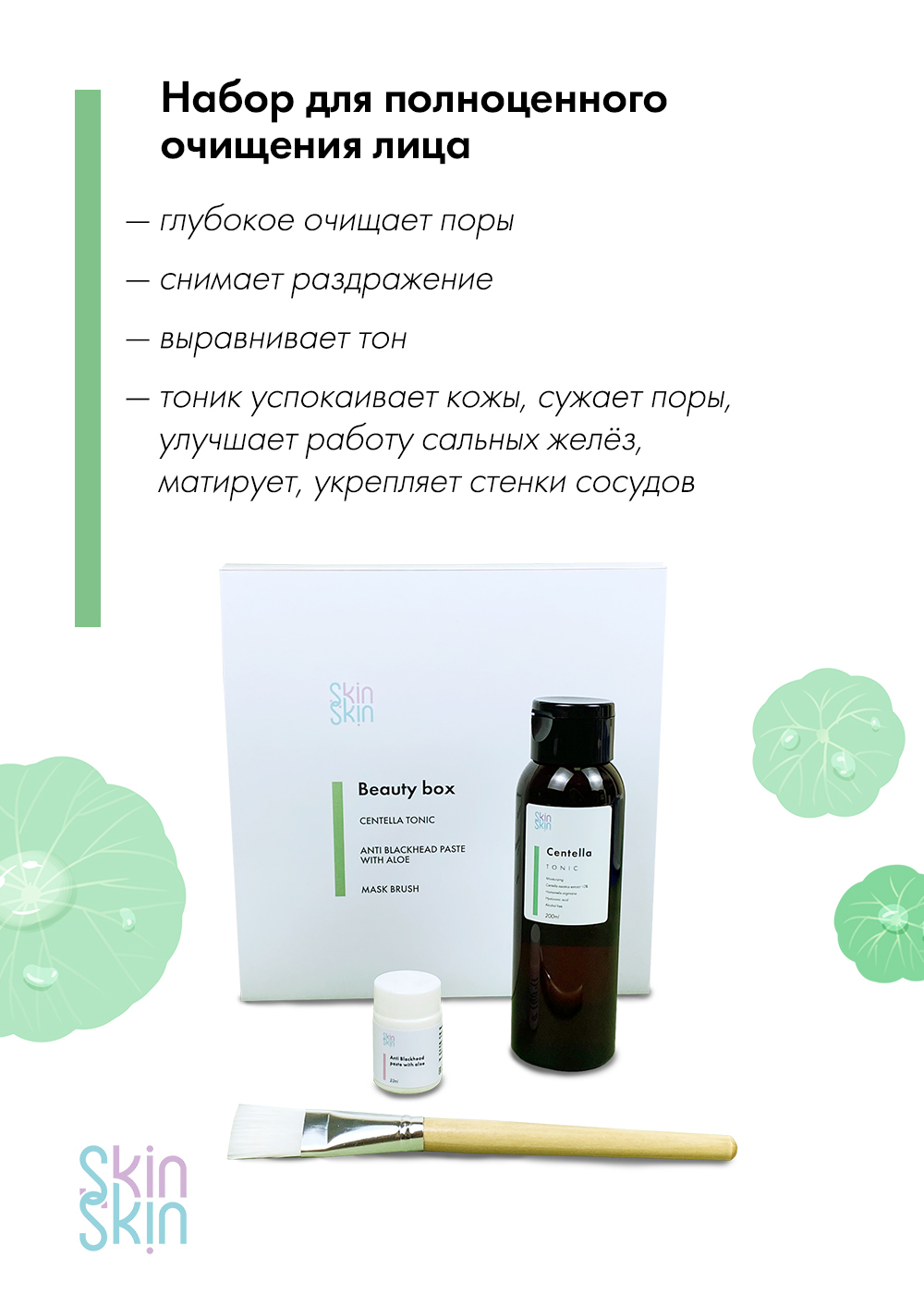 SkinSkin Beauty Box Centella - Набор от чёрных точек (тоник с Центеллой, паста от чёрных точек, кисть для нанесения пасты)