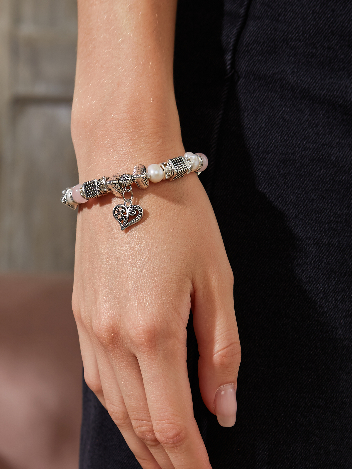 Браслет Skin&Stone из жемчуга (Браслет женский, Браслет на руку, Бижутерия, Браслет из натуральных камней, Жемчуг, Розовый кварц)