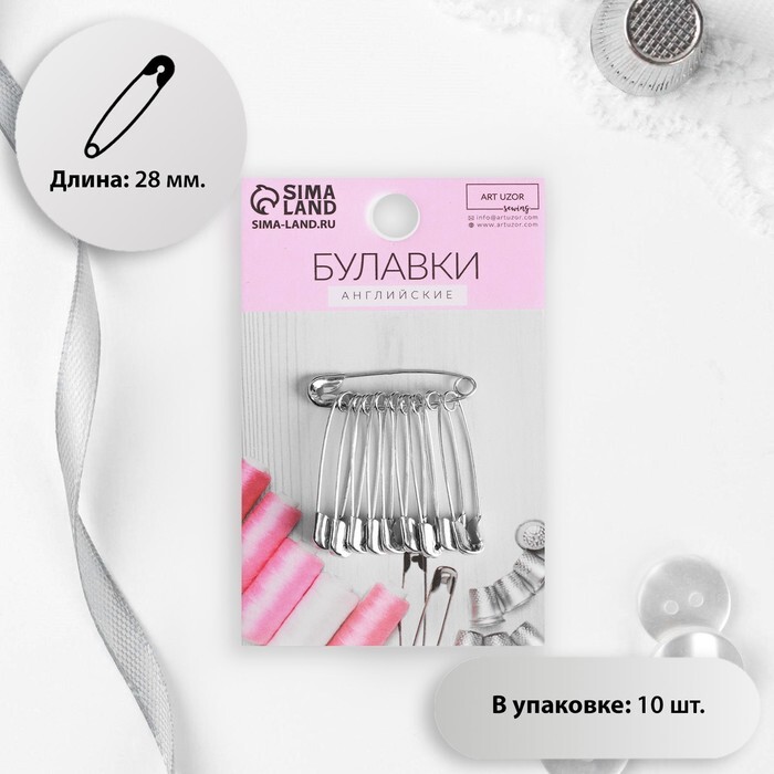 Булавки фиксирующие для крепления английские Модель № 0, 28 мм, 10 шт, цвет серебряный (1шт. набор)
