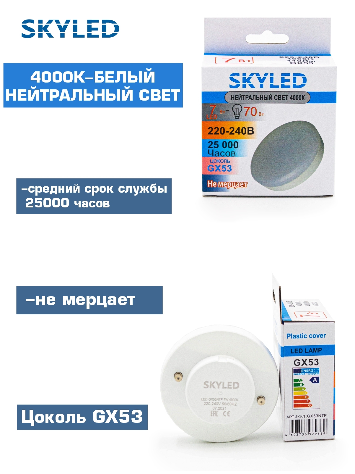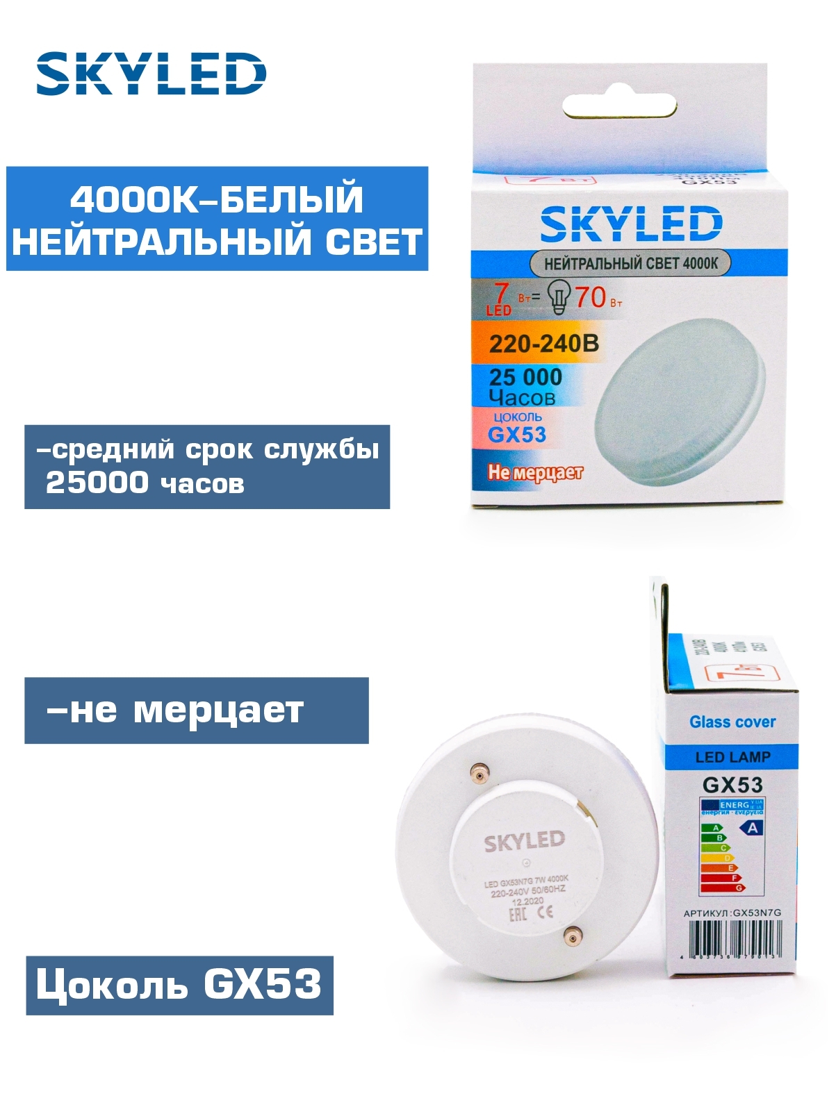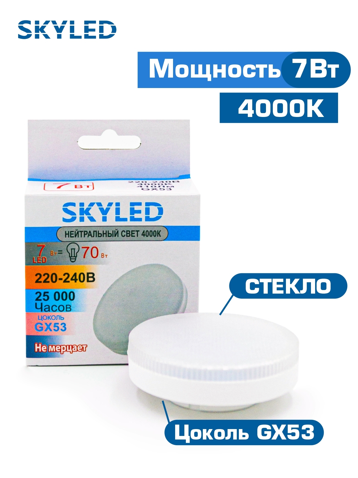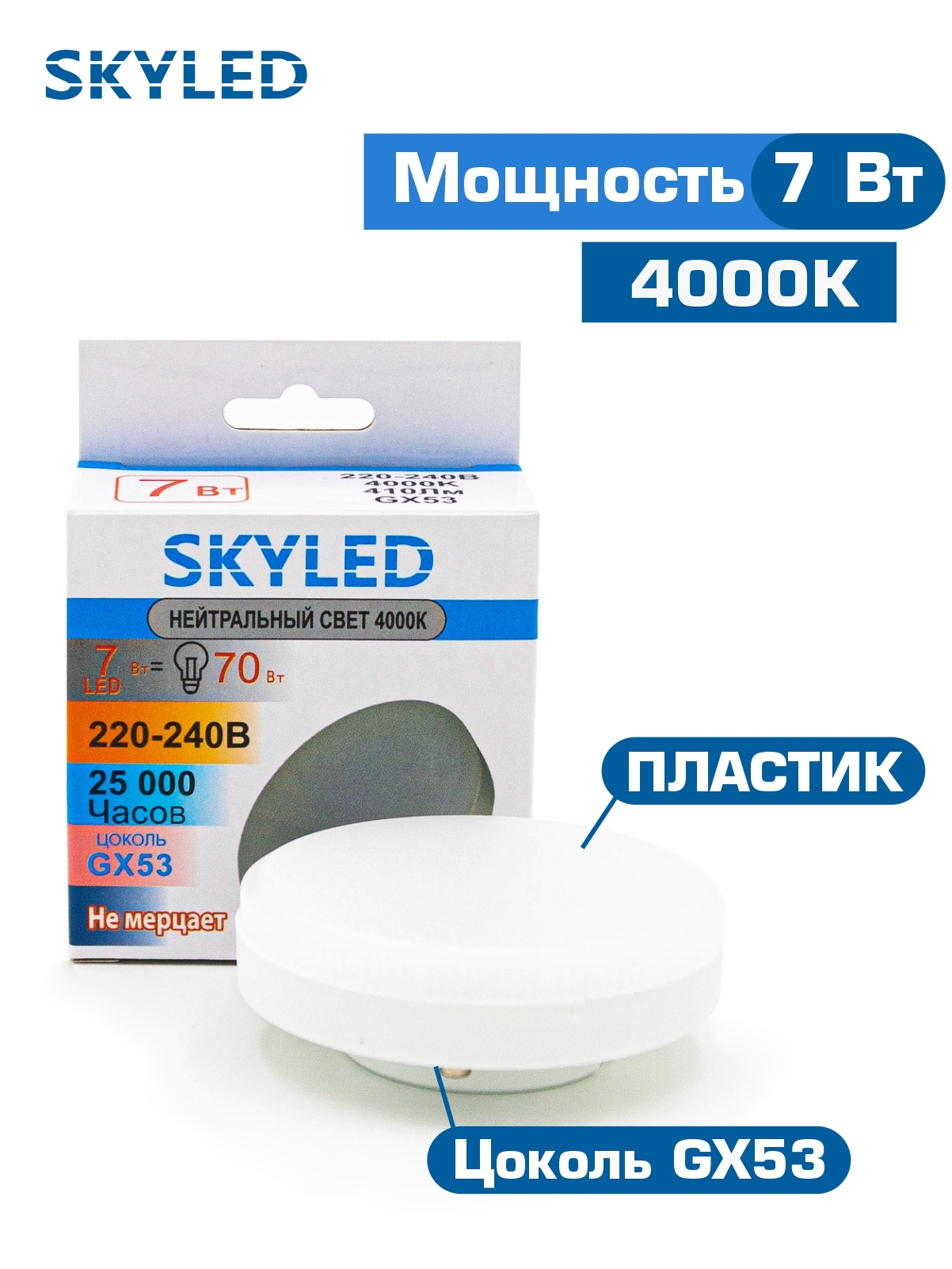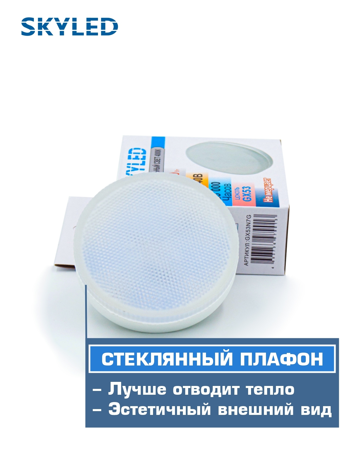 Лампочка SKYLED GX53N7P, Нейтральный белый свет, GX53, 7 Вт, Светодиодная, 1 шт.