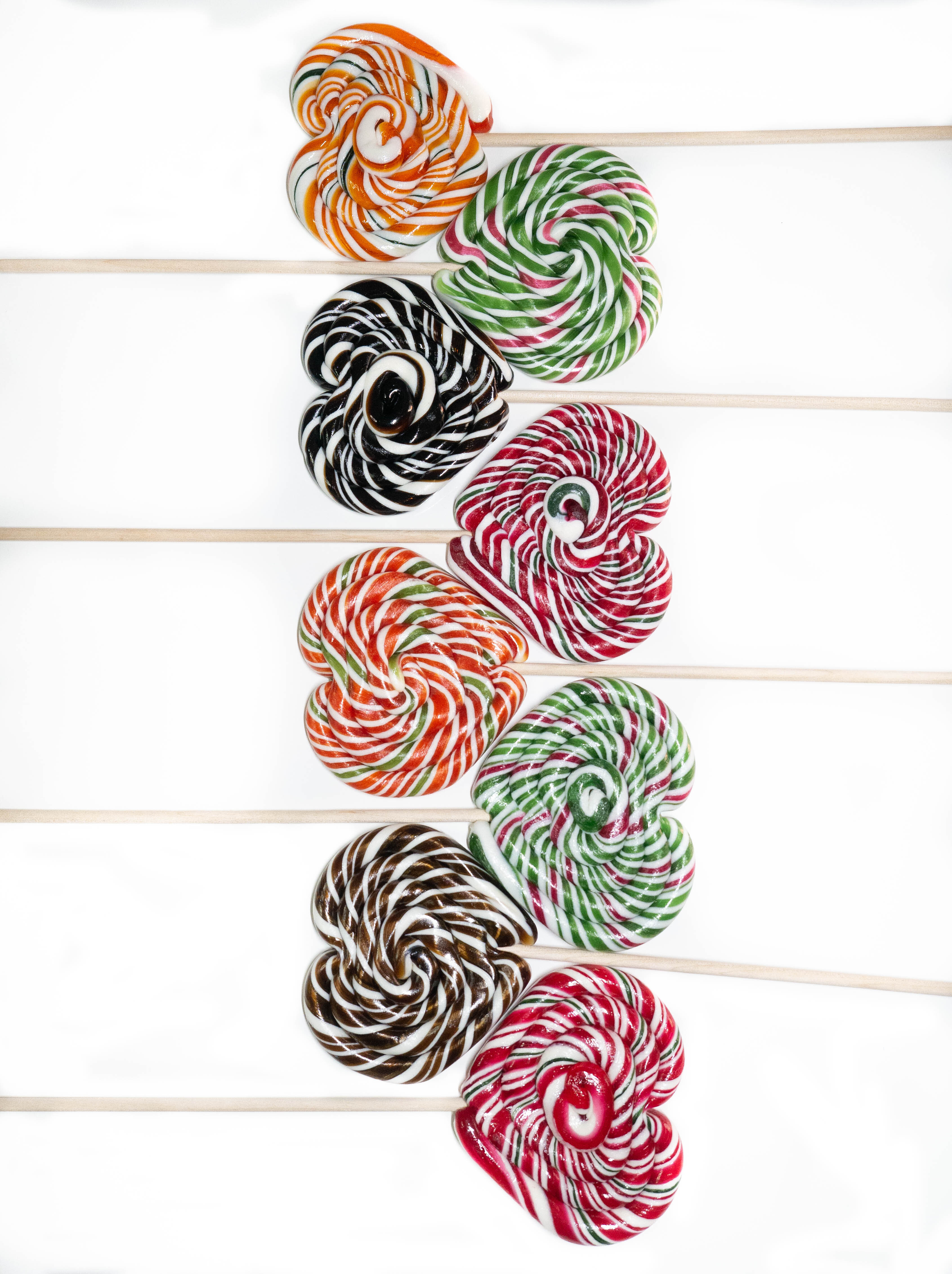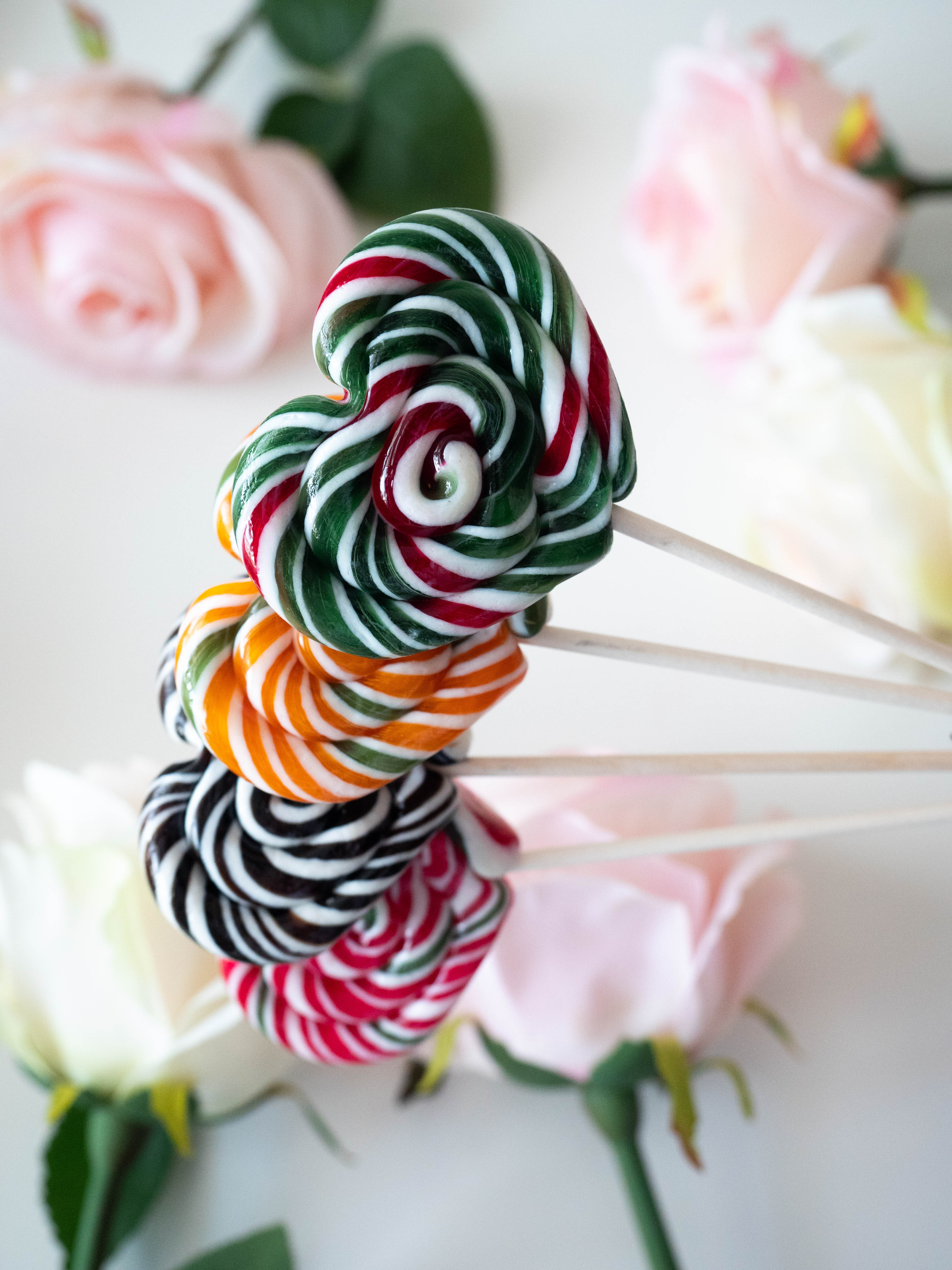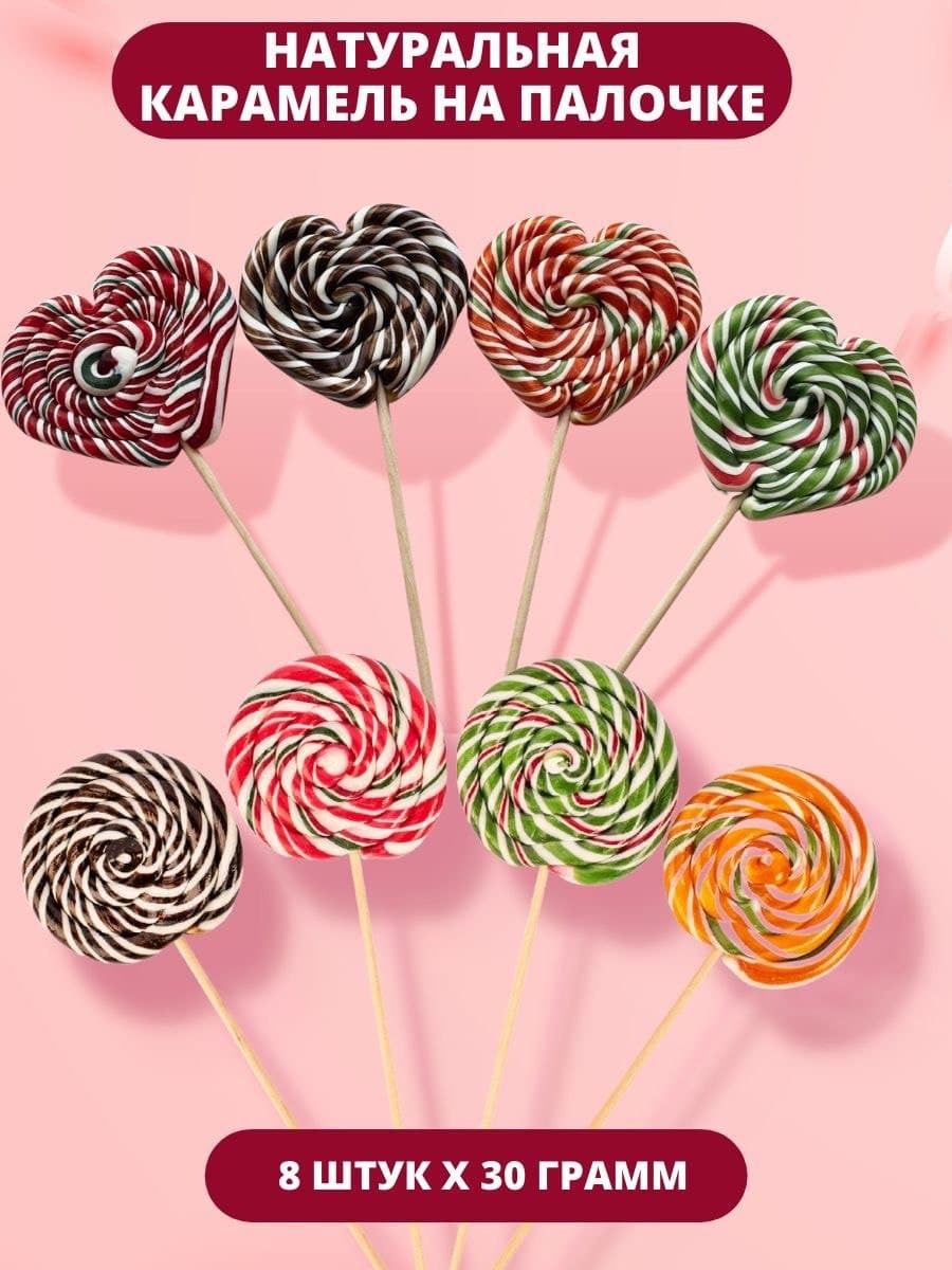 Конфеты леденец на палочке сердечко 4 шт и завиток 4 шт. Праздничная карамель на палочке