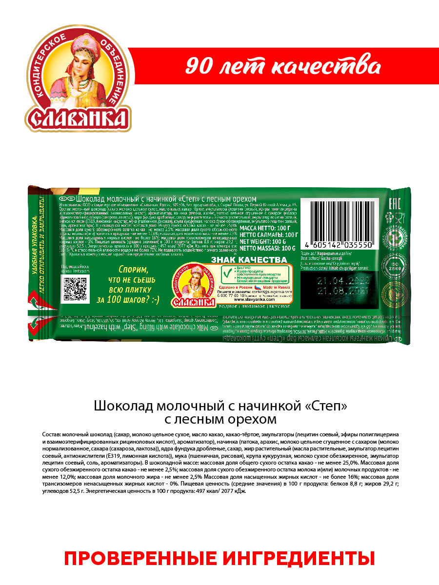 Молочный шоколад "Степ" лесной орех и карамель, 15 шт по 100 г